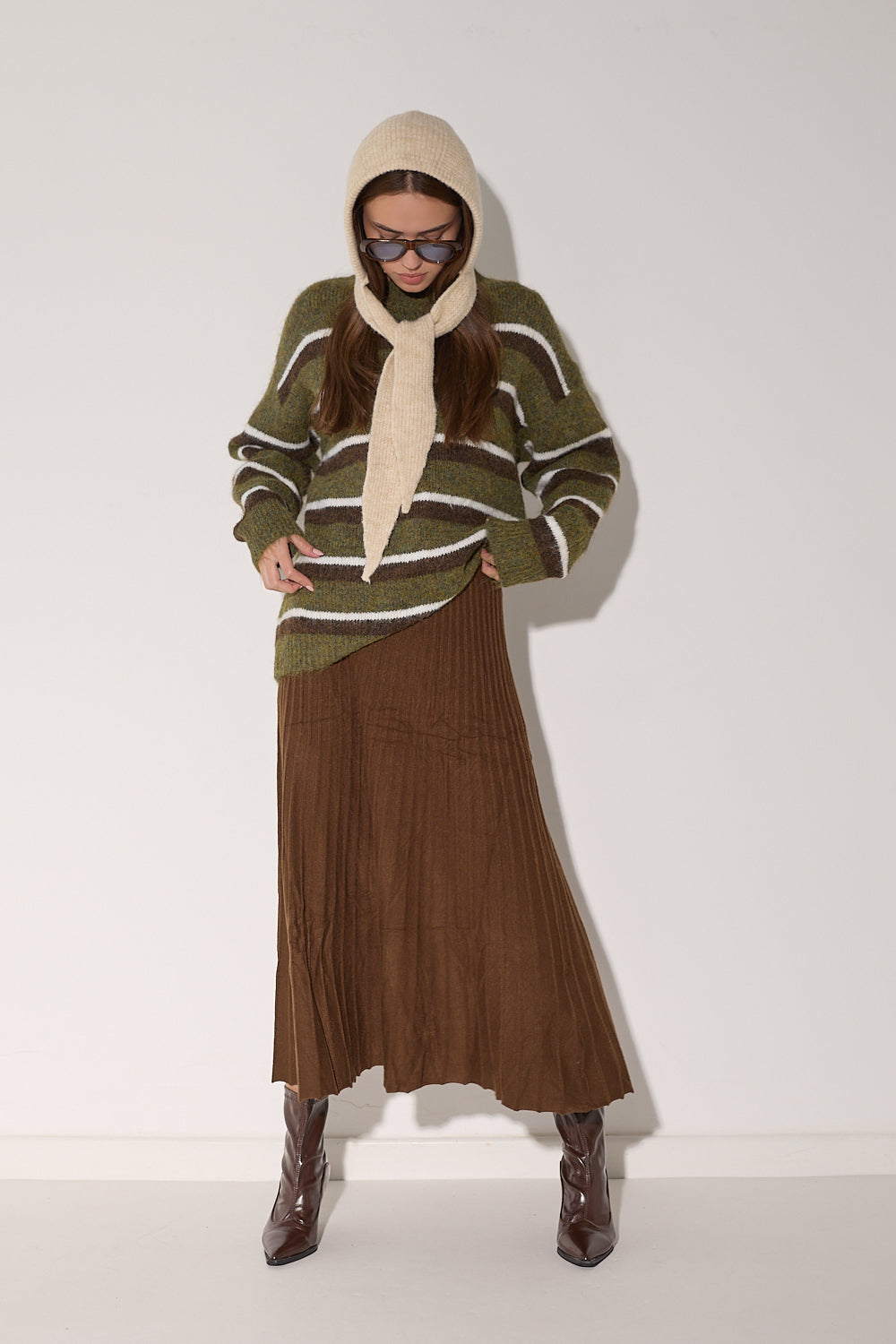 לימים שבהם הבוקר קריר וחם בצהריים, חצאית ג'ינס אוליביה ארוכה היא פריט חובה שמשתלבת נהדר עם כל סריג – קל או עבה.