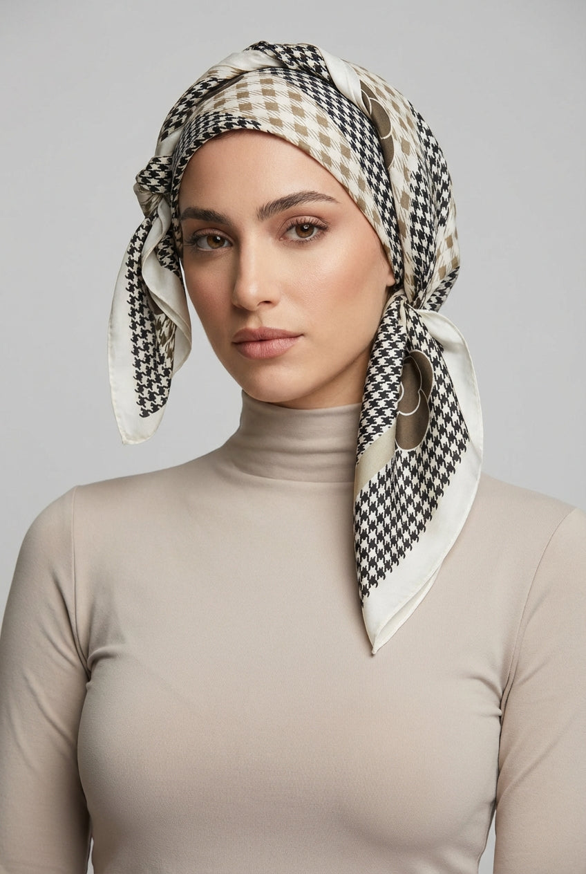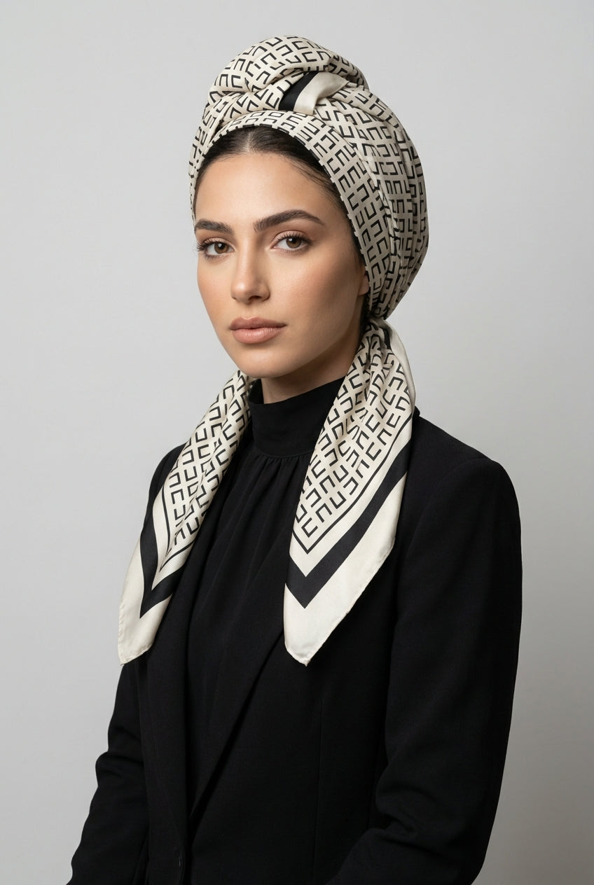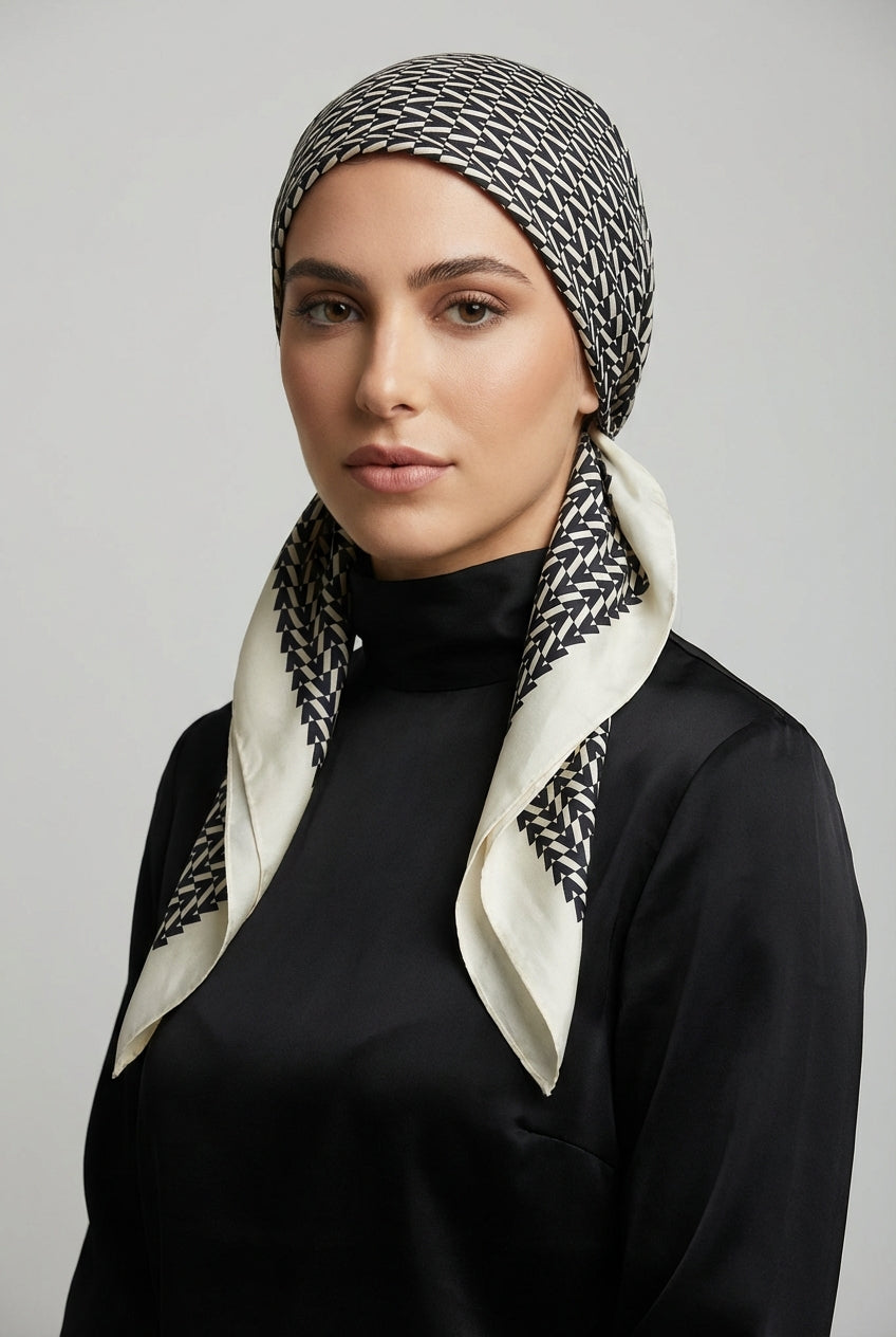 מטפחת משי מרובעת פטרן גיאומטרי