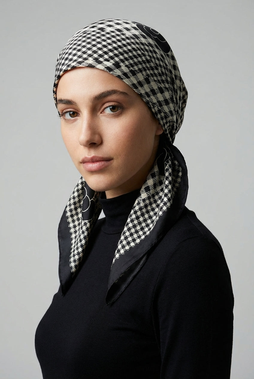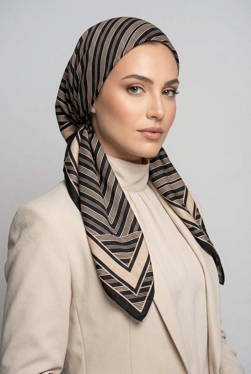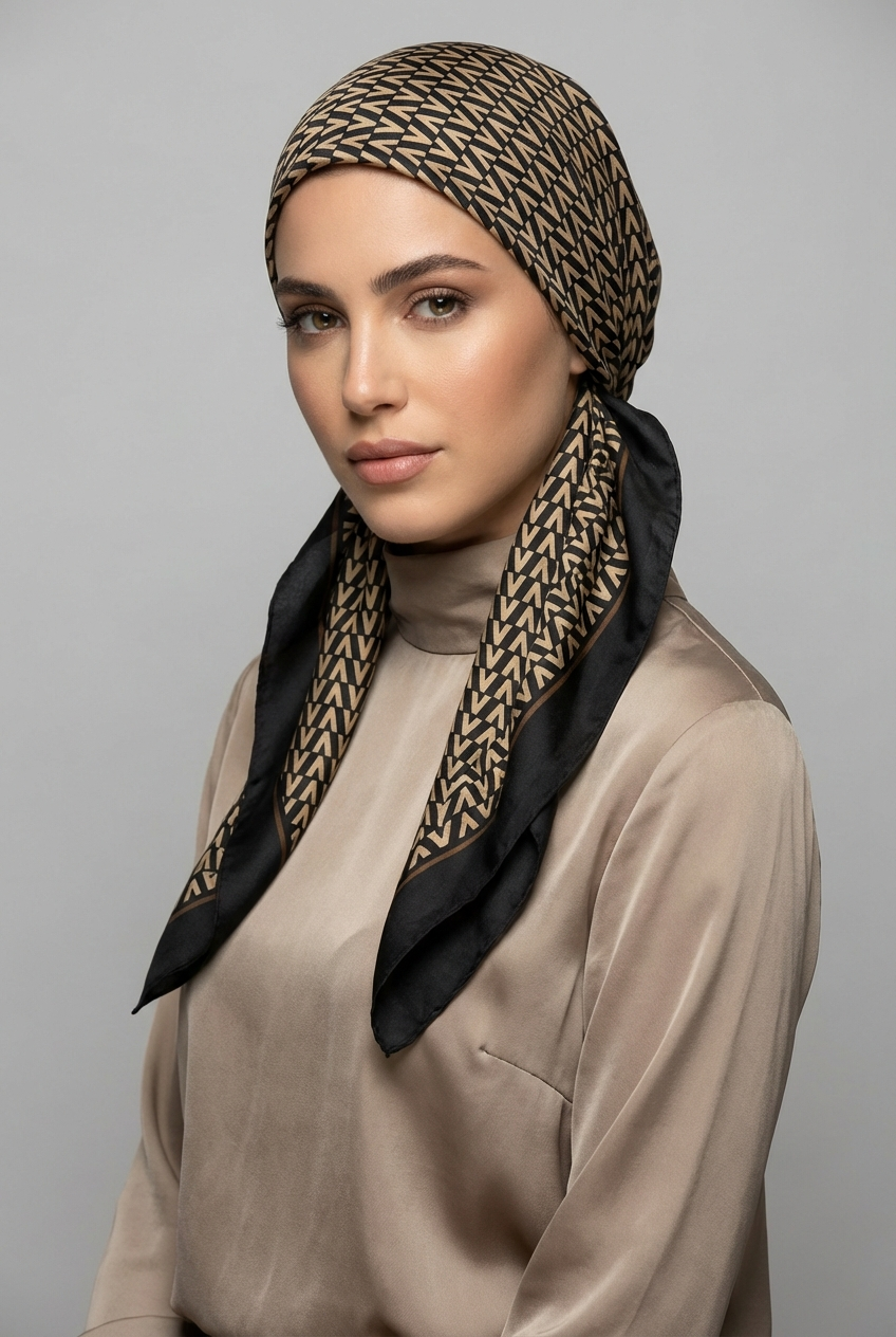 מטפחת משי מרובעת פטרן גיאומטרי
