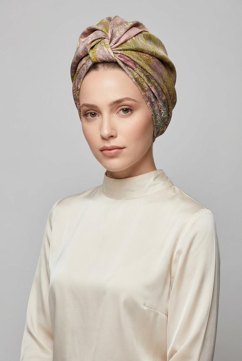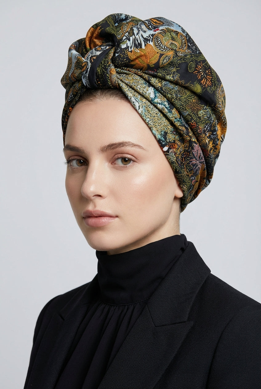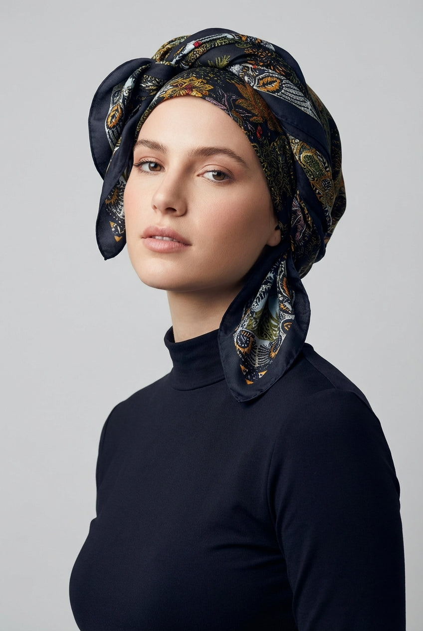 מטפחת משי מעוטרת עלים