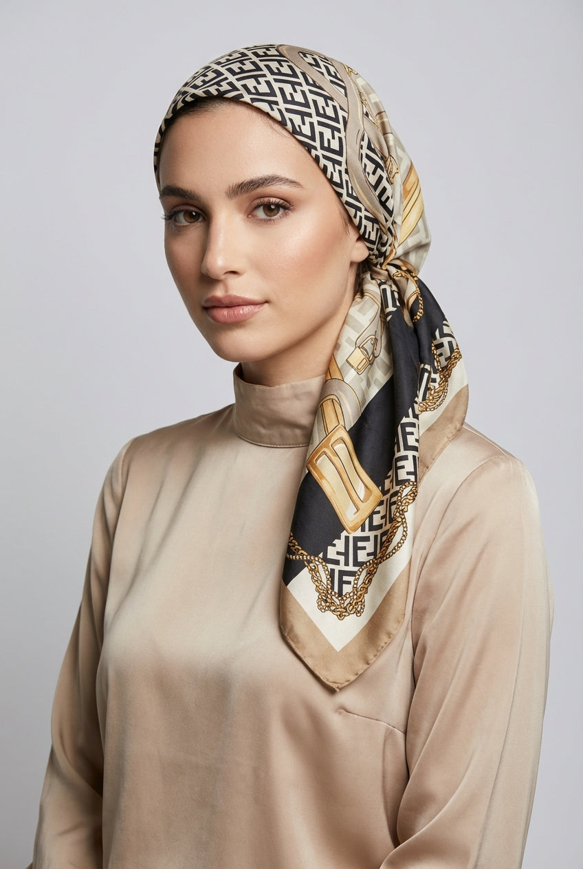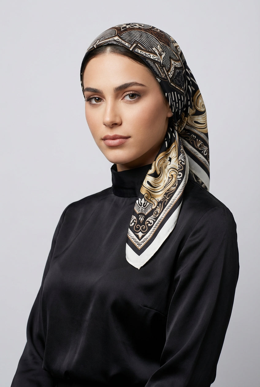 מטפחת משי יוקרתית בהדפס בארוק גיאומטרי
