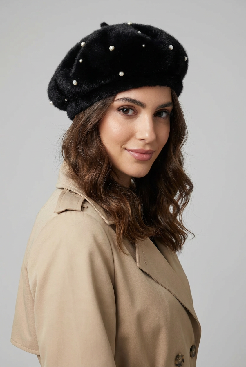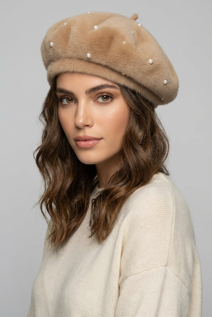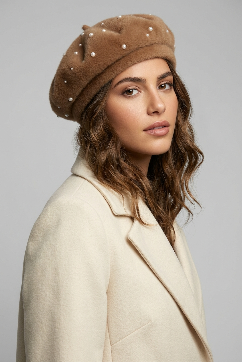 כובע ברט פנינים פרוותי