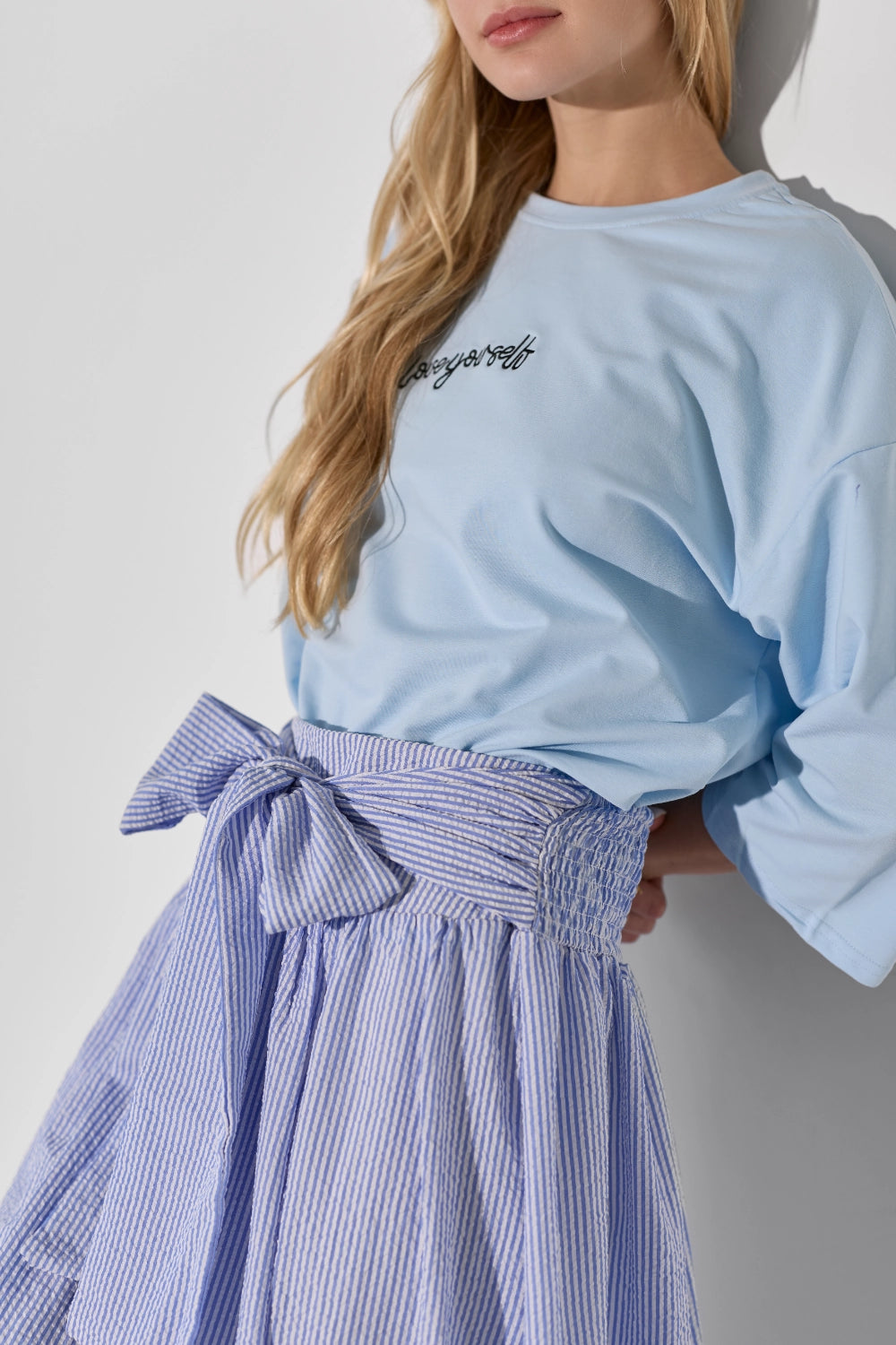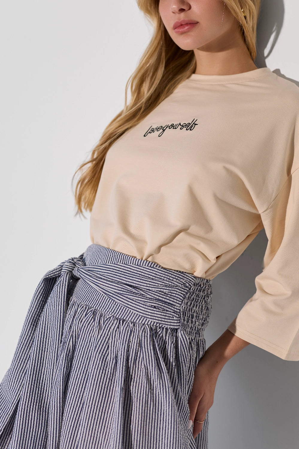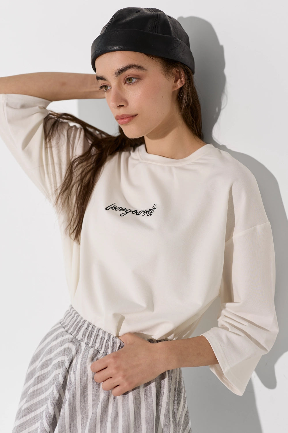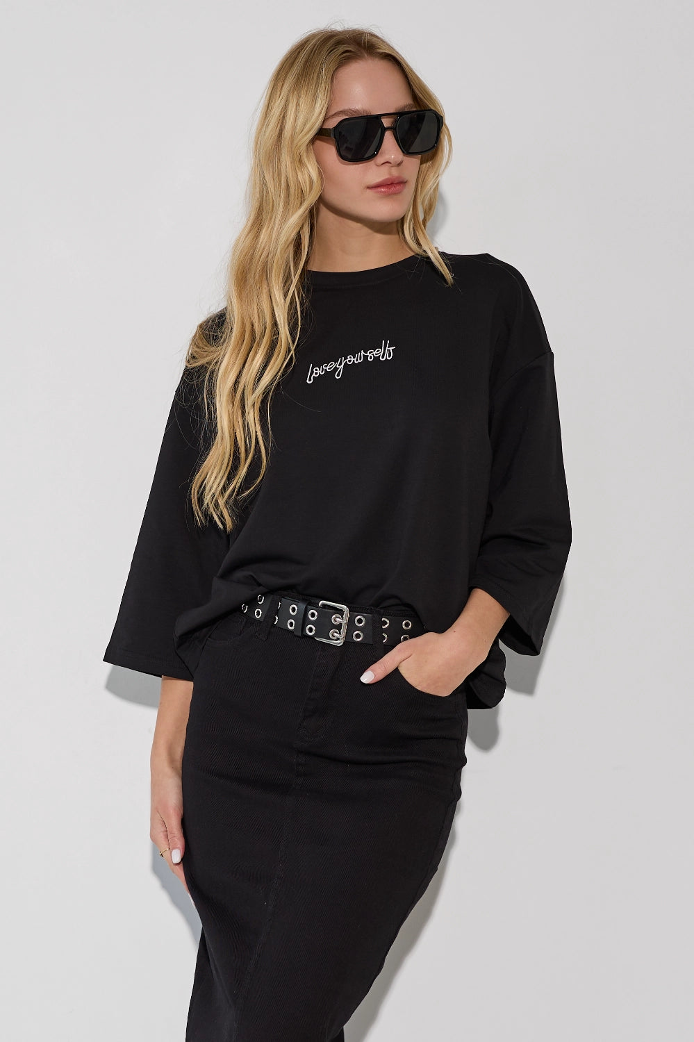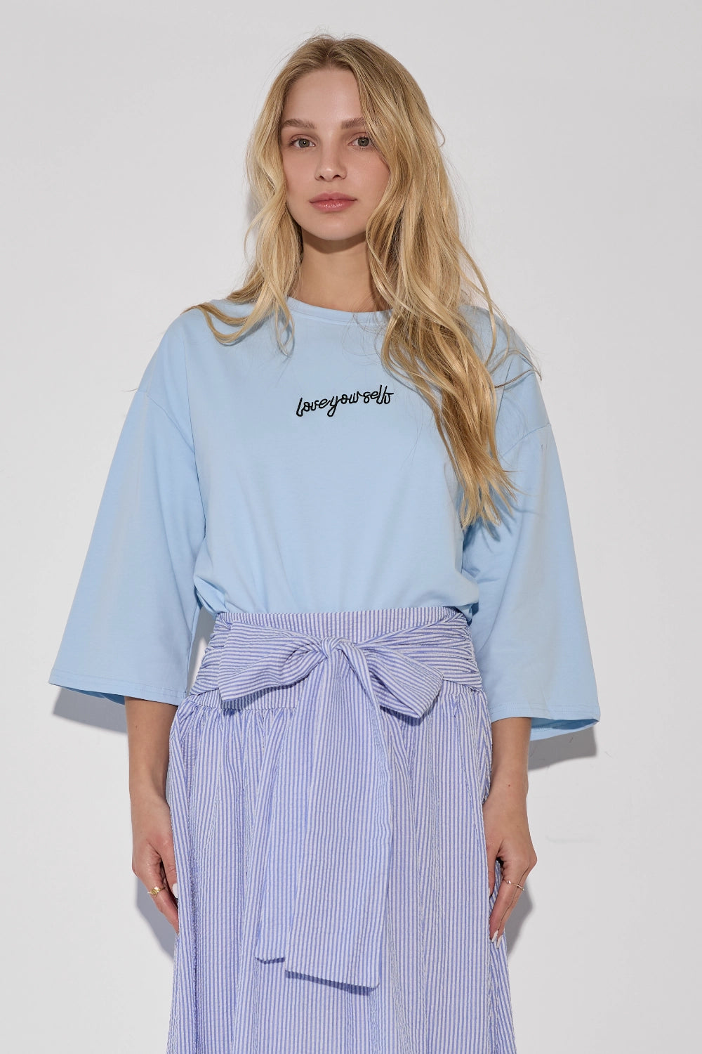 חולצה אוברסייז עם דפוס לב מיוחד, שמוסיף נגיעה שובבה ורומנטית לגזרה משוחררת ונוחה. בד קליל ונושם שמרגיש נוח לאורך כל היום – פריט שמשלב כיף וסטייל בצורה מושלמת. לבשי אותה עם ג'ינס לסטייל קז'ואל יומיומי, מכונסת לתוך חצאית מידי לאאוטפיט מוקפד, או עם מכנסי טרנינג לוק נוח ומחמיא.