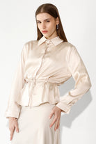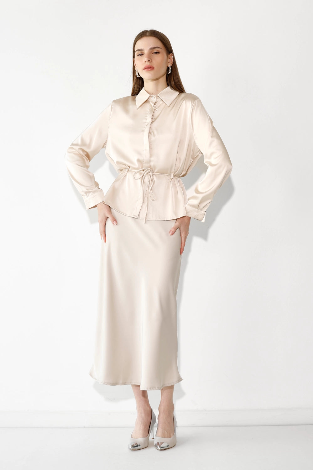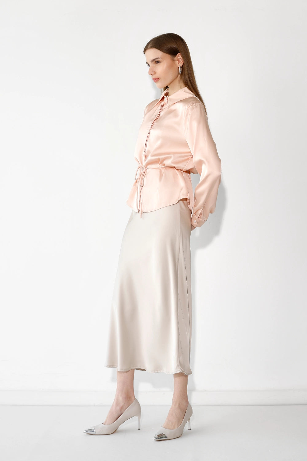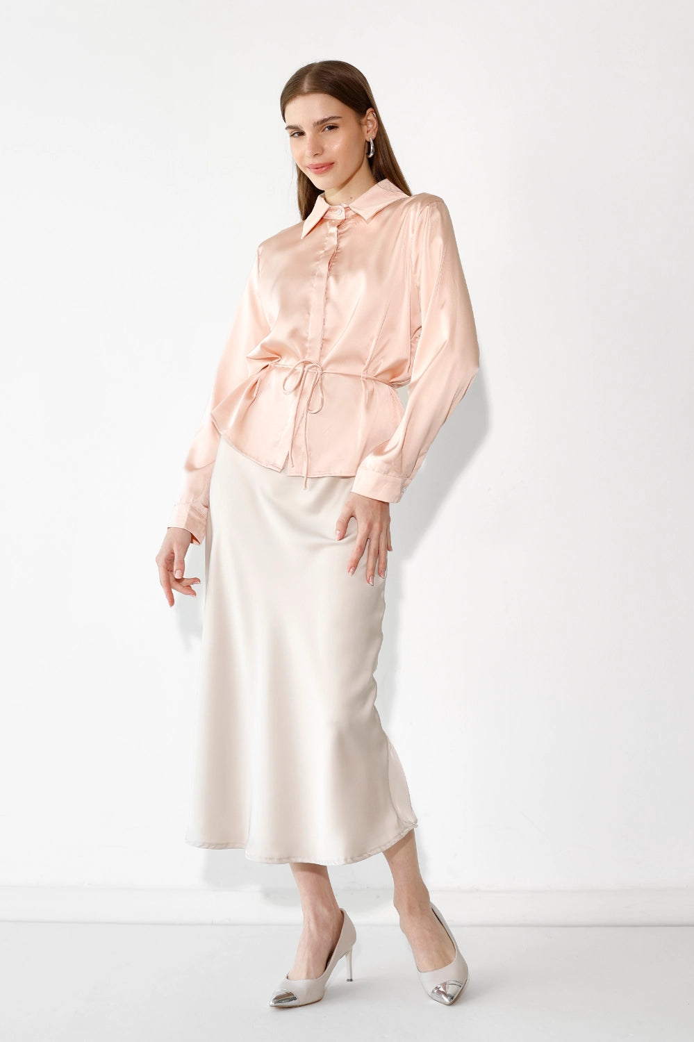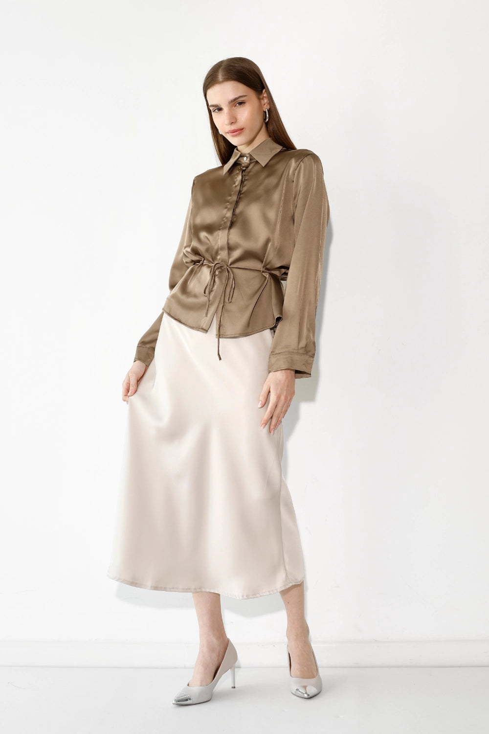 חולצה סאטן היא הפריט שמרגיש יוקרתי מהרגע הראשון. בד סאטן חלק ומבריק שנופל בצורה מושלמת על הגוף, עם מראה מלוטש שמתאים לכל אירוע – מיום עבודה ועד ערב מיוחד. לבשי אותה עם חצאית סאטן לאאוטפיט אלגנטי, או עם חצאית ג׳ינס לסטייל קז'ואל-שיק.