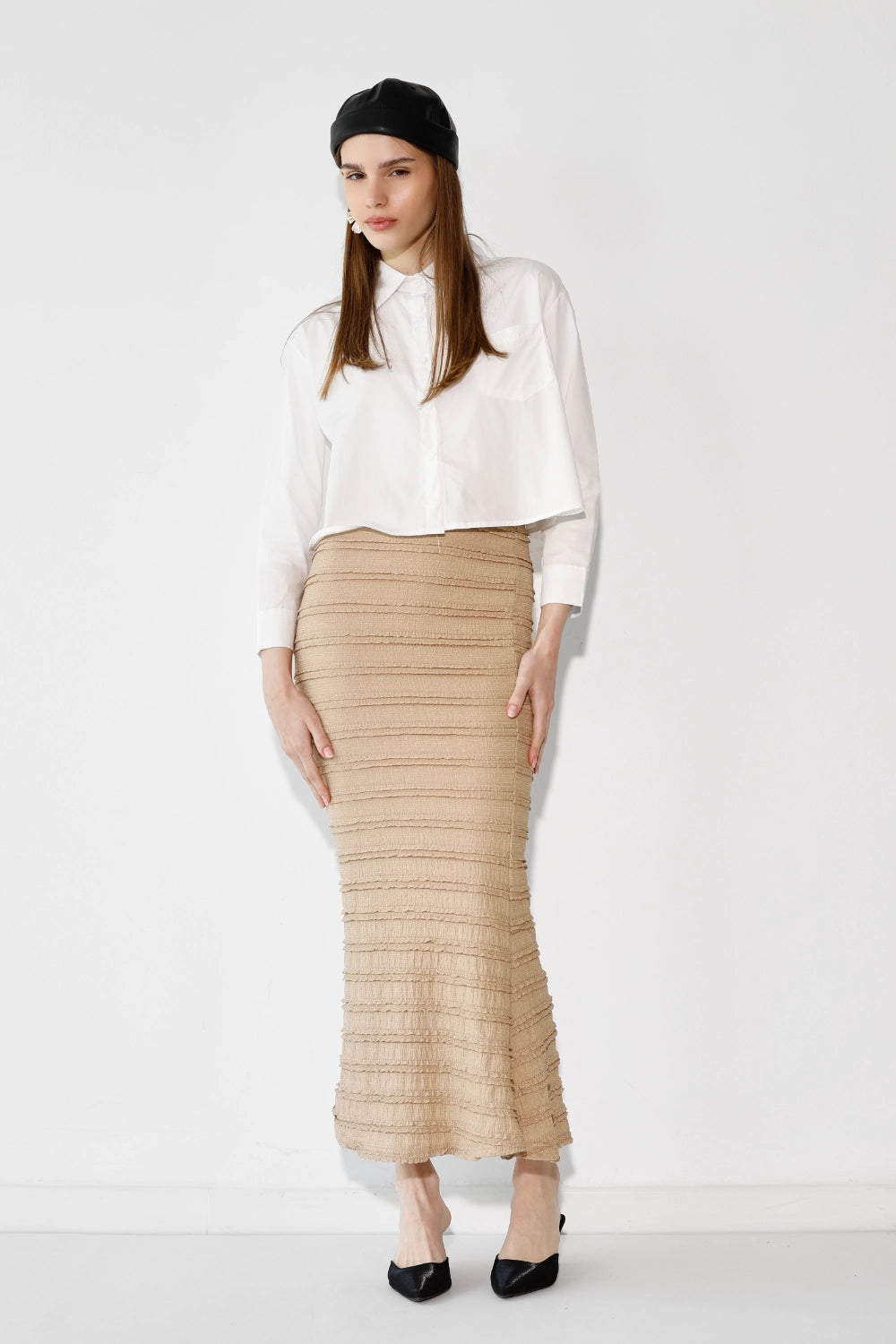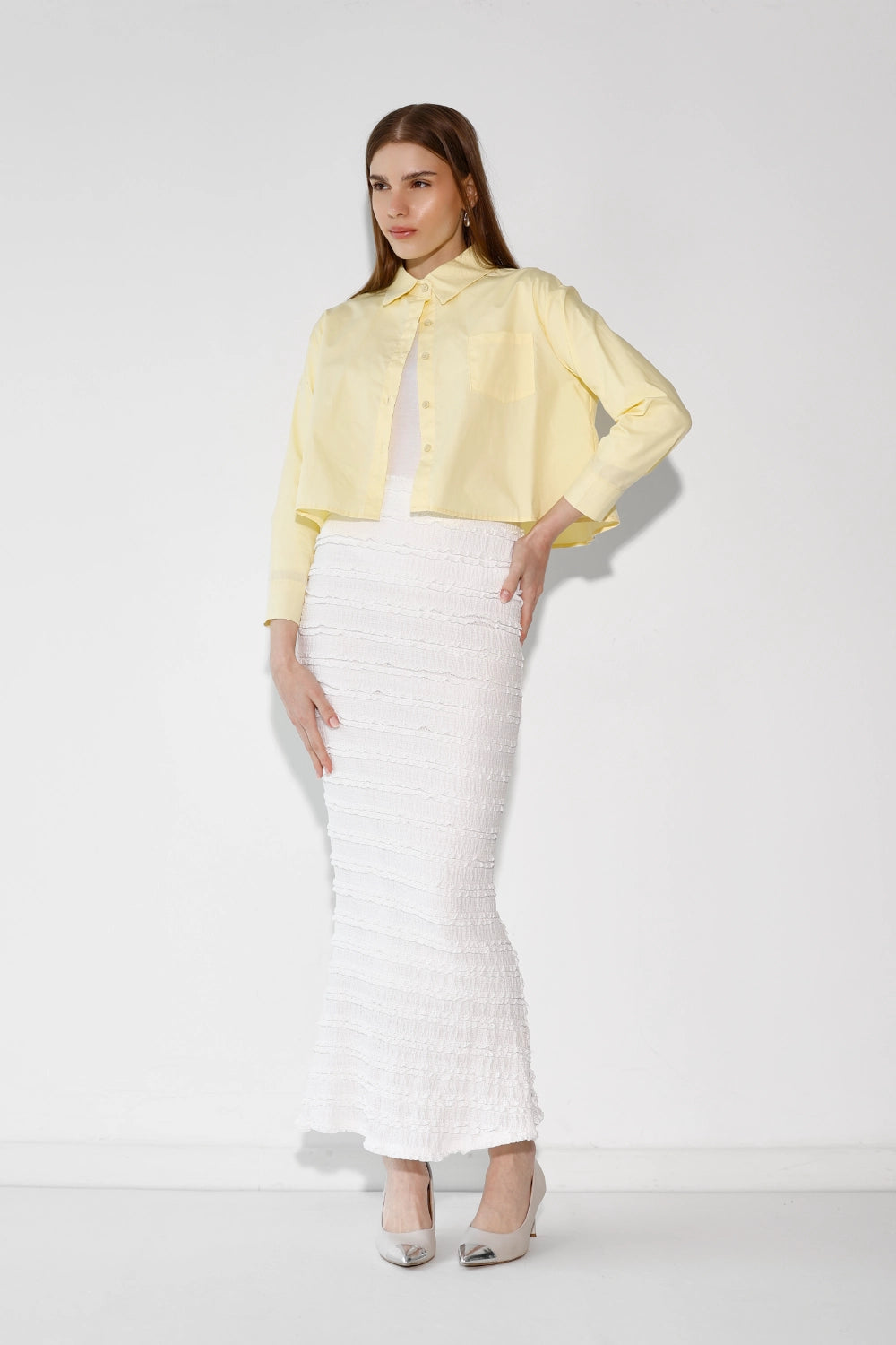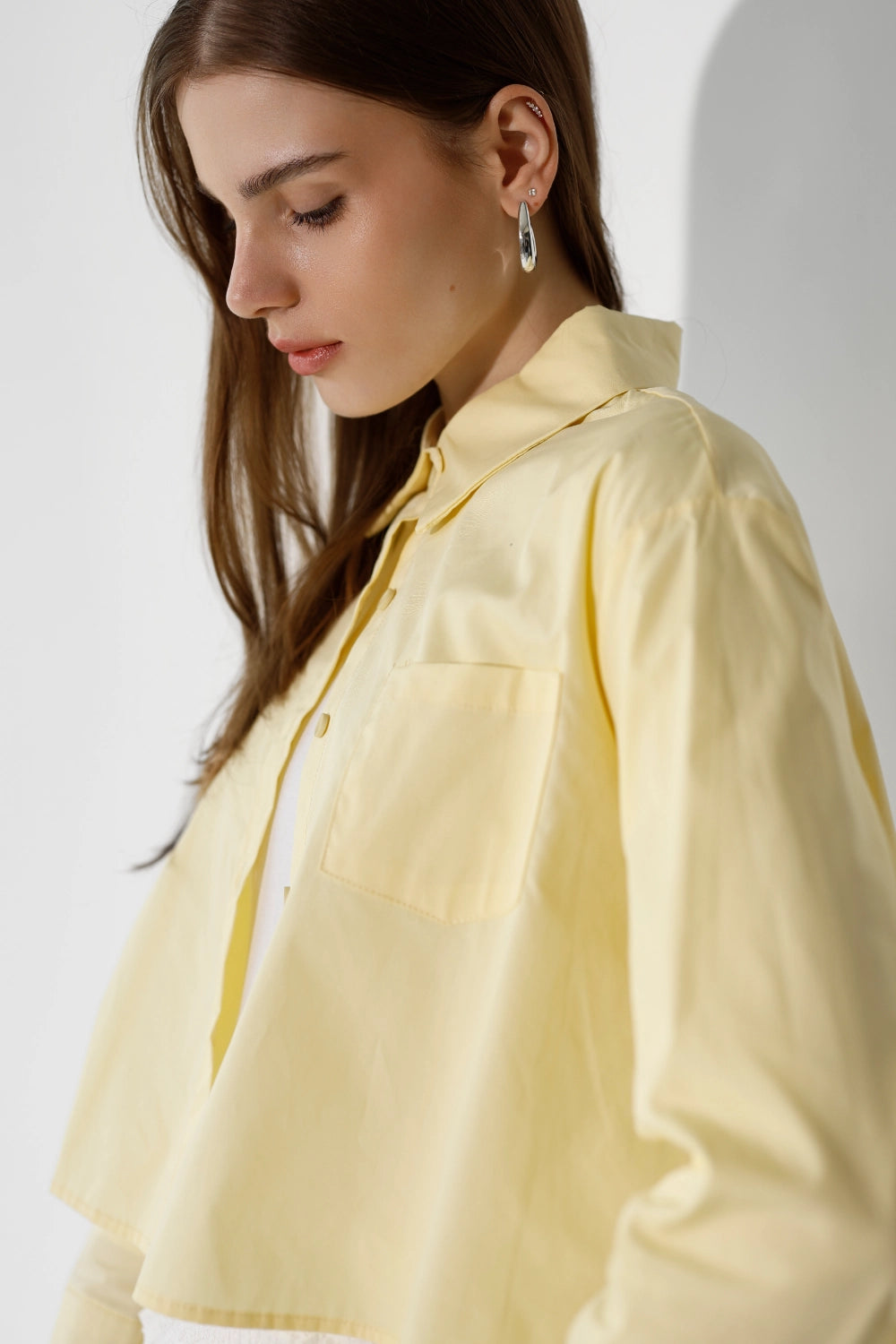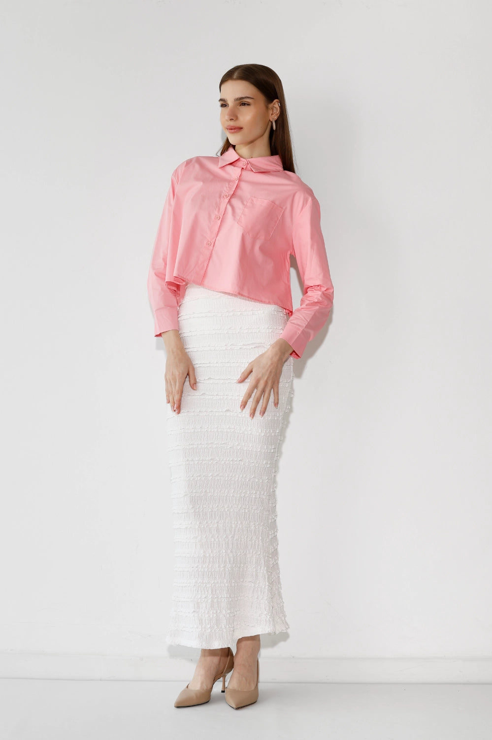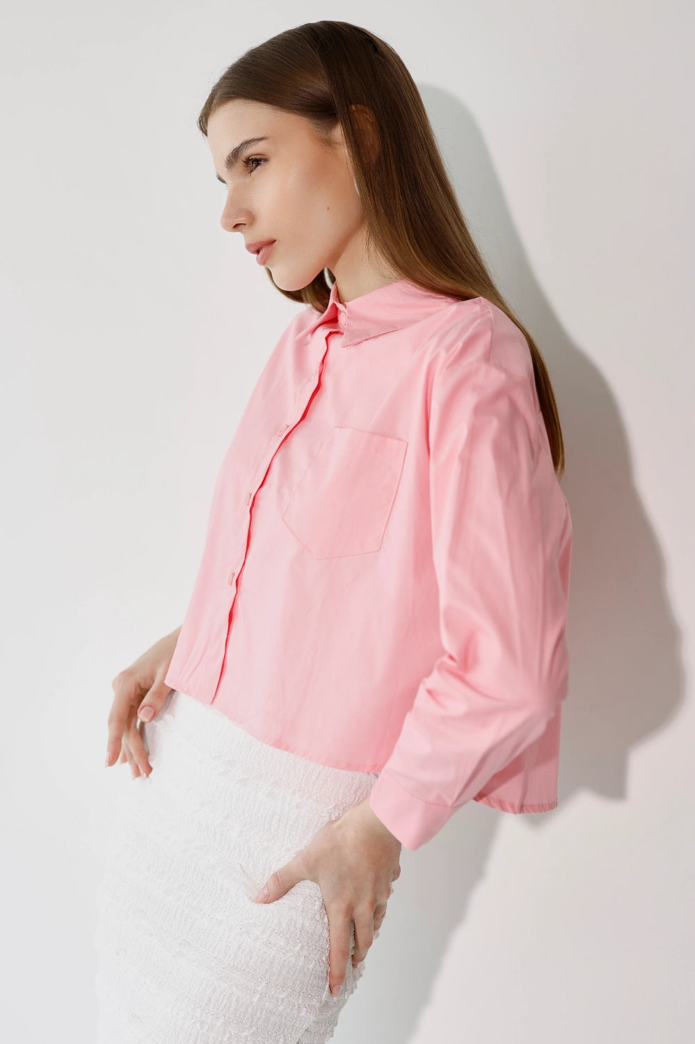 חולצה מכופתרת בבד פרקל רך ונעים, עם כיס חזה עדין שמוסיף נגיעה של פרט מחושב. גזרה נקייה ומחמיאה שמשדרת סטייל יומיומי קל ואוורירי. קלה לשילוב עם כל פריט בארון – מכונסת לתוך חצאית מידי, פתוחה מעל ג'ינס, או קשורה בקשר קצר לקיץ. פריט שמשדרג כל לוק בשניות.