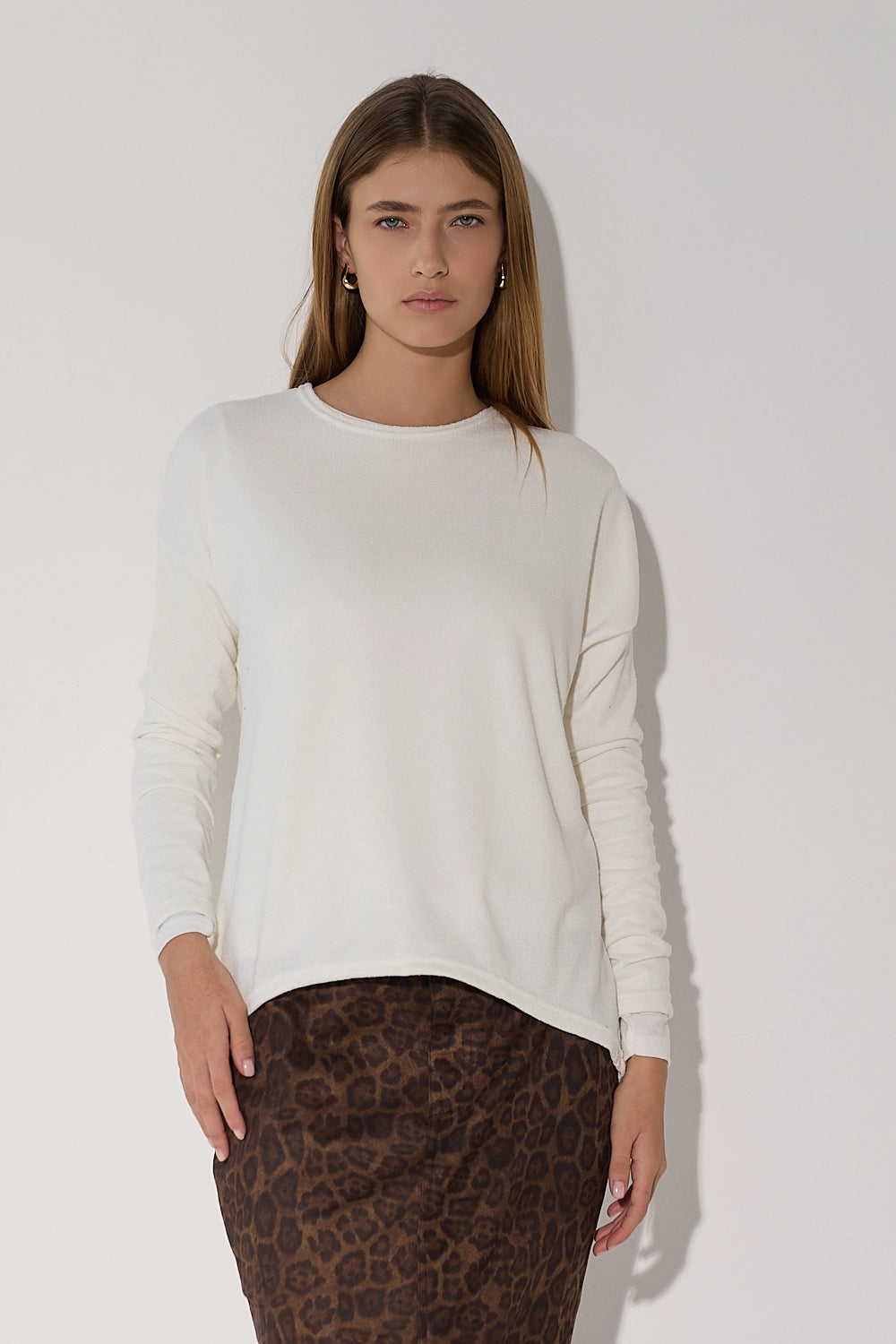 חולצת סריג עטלף בגזרת אוברסייז רחבה ונוחה - הבסיס המושלם במלתחה. עשויה מבד סריג דק נעים במיוחד, עם שרוולים ארוכים ונפילה רפויה שמחמיאה לכל סוגי הגוף. הגזרה הרחבה והצווארון העגול היוצרים סילואט נקי ואלגנטי שמשדר נינוחות בכל יציאה וגם כבייסיק בשכבות.