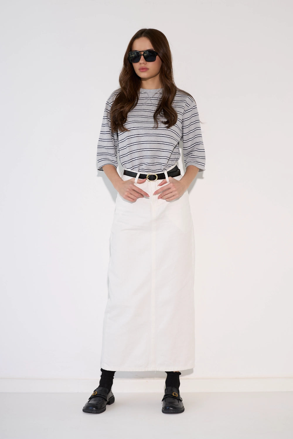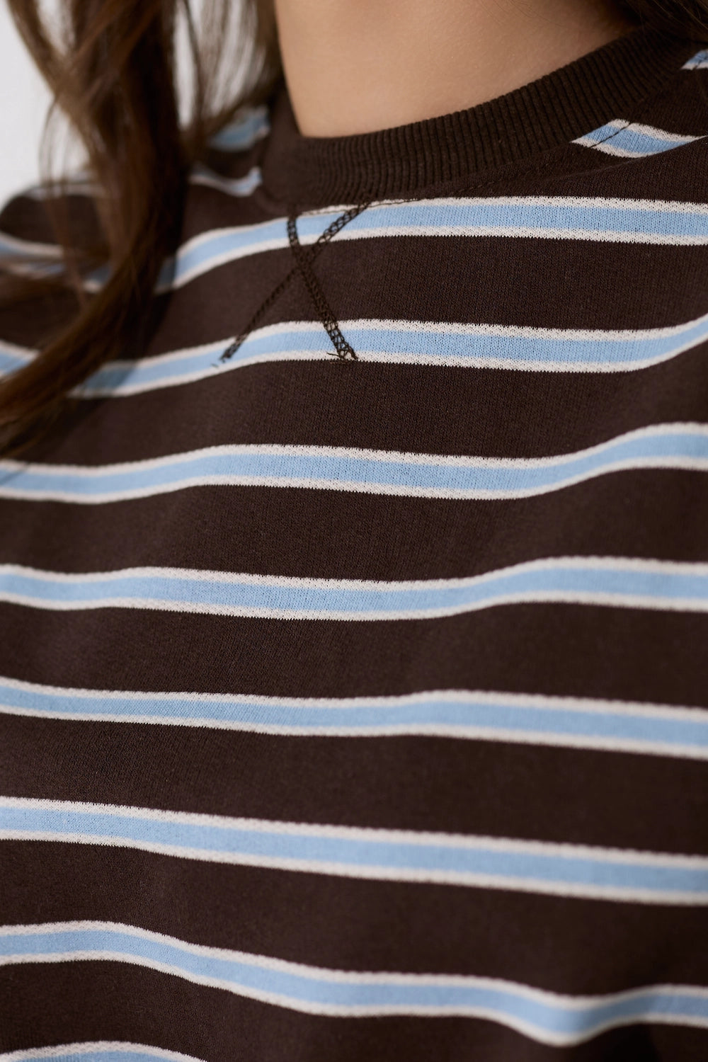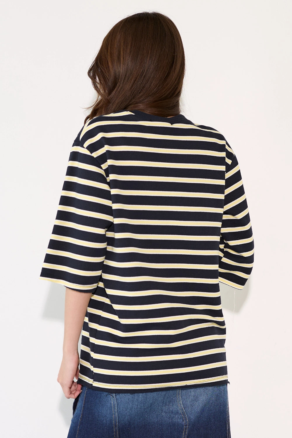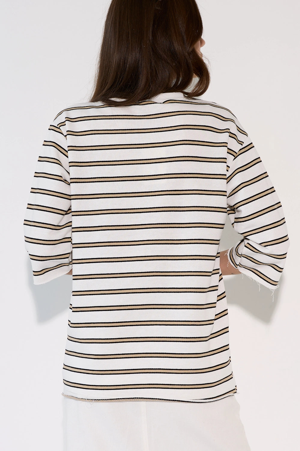 חולצת אוברסייז בגזרה נינוחה ורחבה עם פסים קלאסיים שמעניקים מראה טרנדי ונקי. החולצה עשויה בטכניקת פלאט לוק איכותית לגימור מעודן ומקצועי, שמבטיח תפרים שטוחים ומראה מושלם.