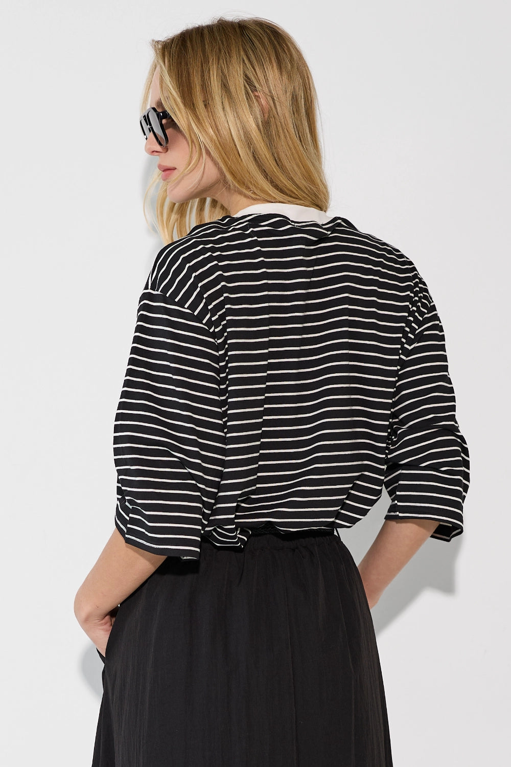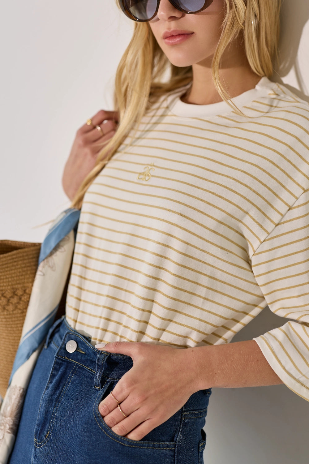 חולצה קלילה עם פרט רקמה עדין, שמוסיף נגיעה מיוחדת ומעודנת לגזרה נשית ונקייה. בד נעים ונושם שמרגיש נוח לאורך כל היום – פריט שמשלב עדינות וסטייל בצורה מושלמת. לבשי אותה עם ג'ינס לסטייל קז'ואל, מכונסת לתוך חצאית מידי לאאוטפיט מוקפד ומחמיא