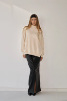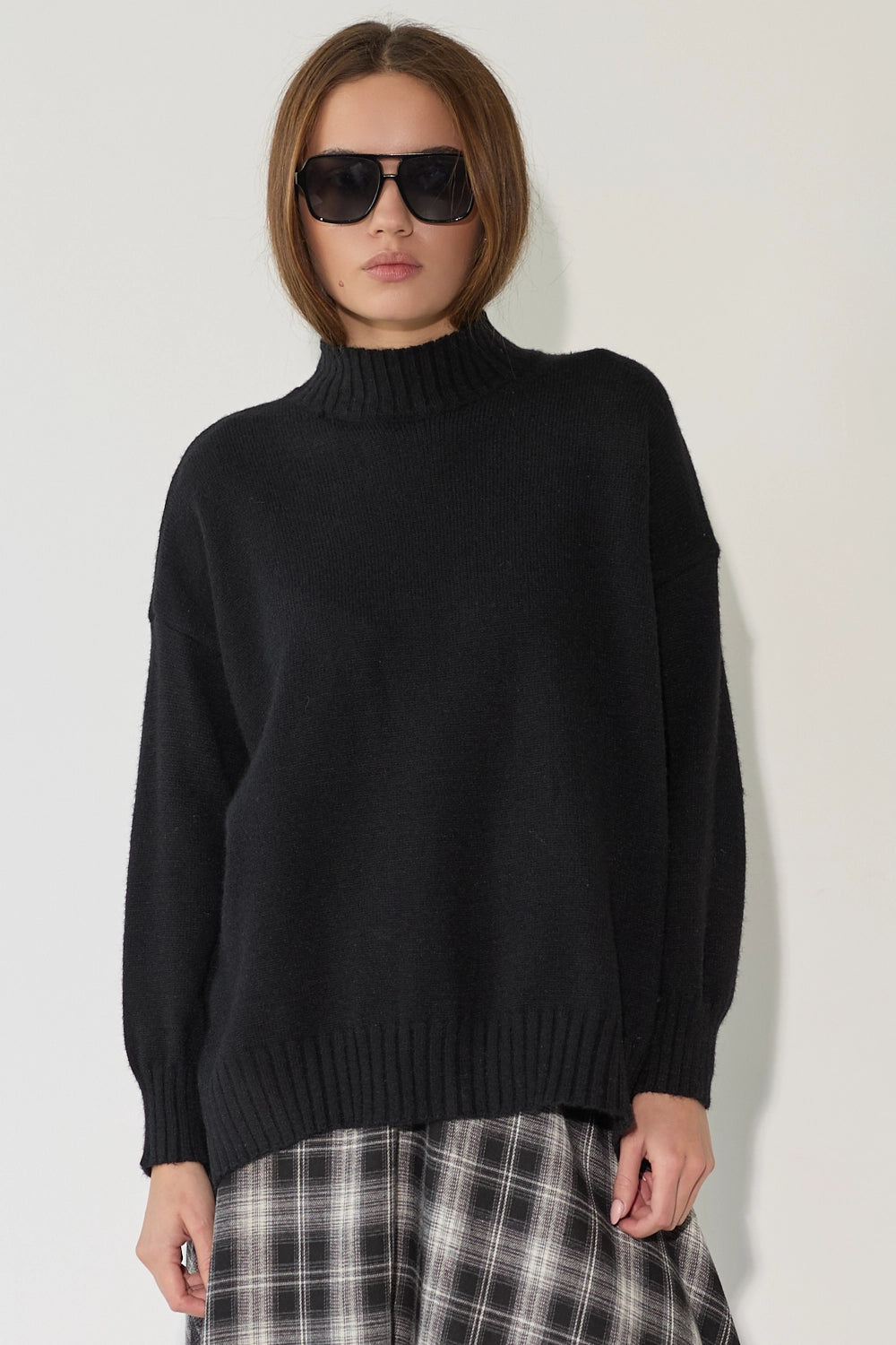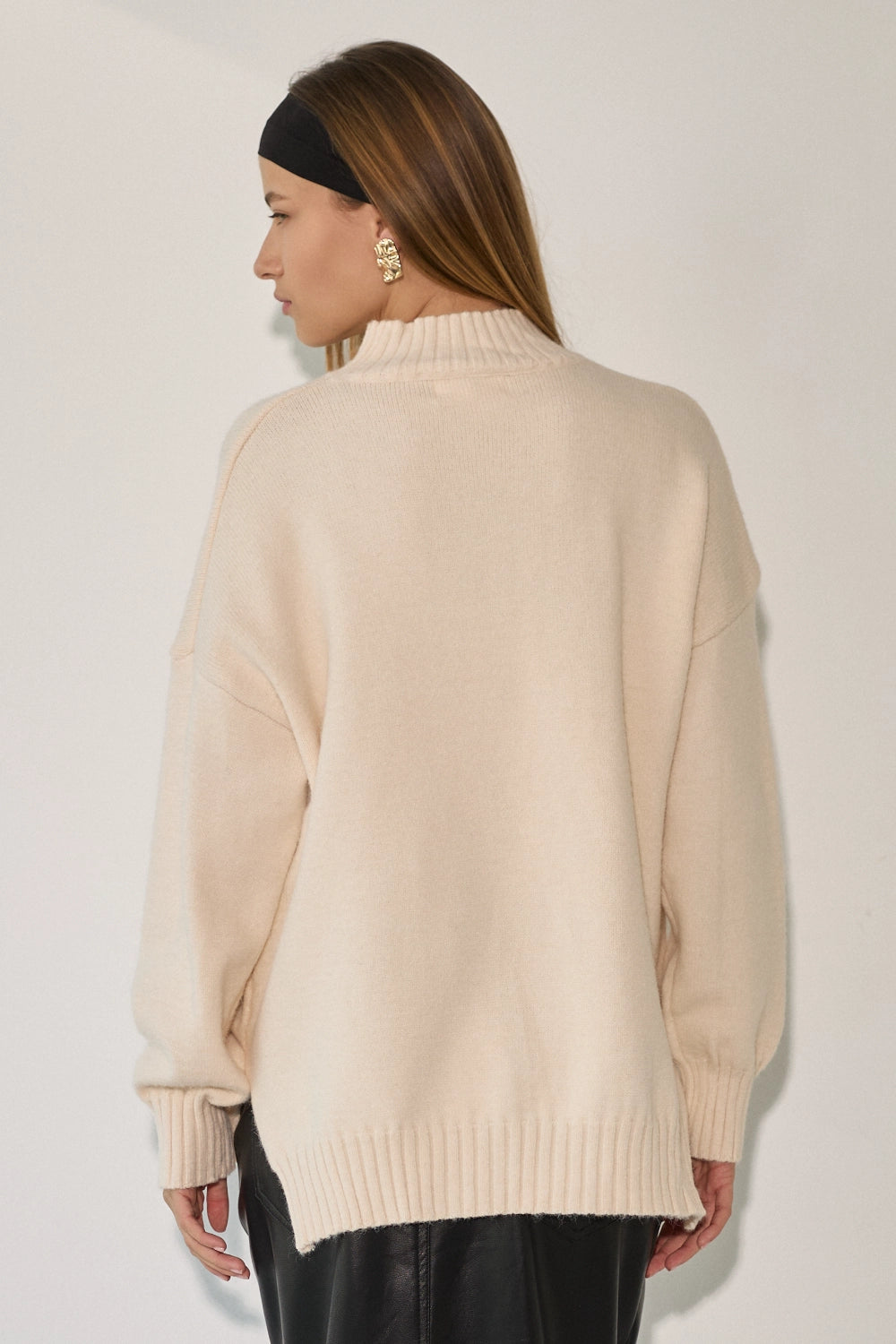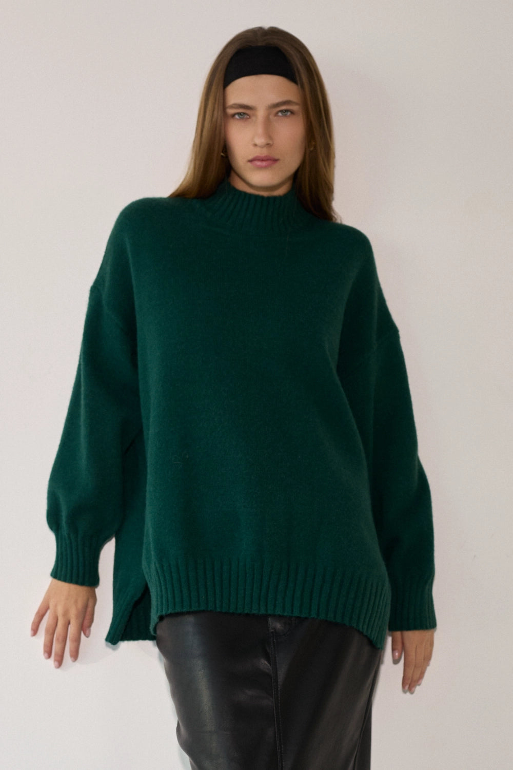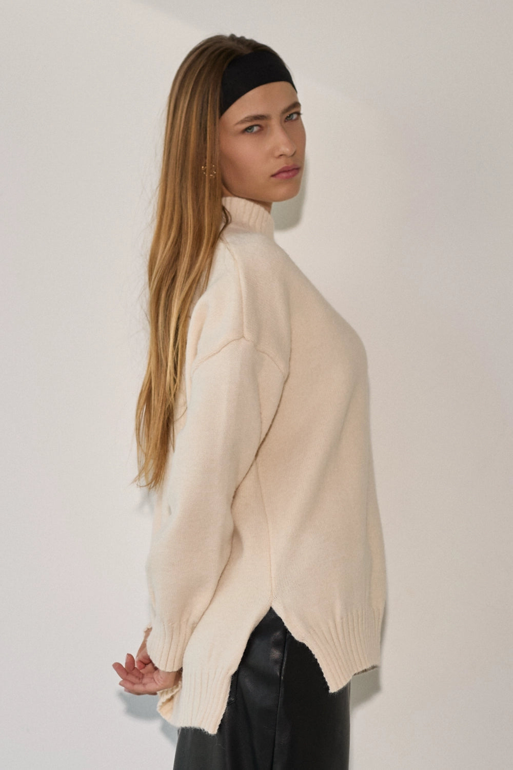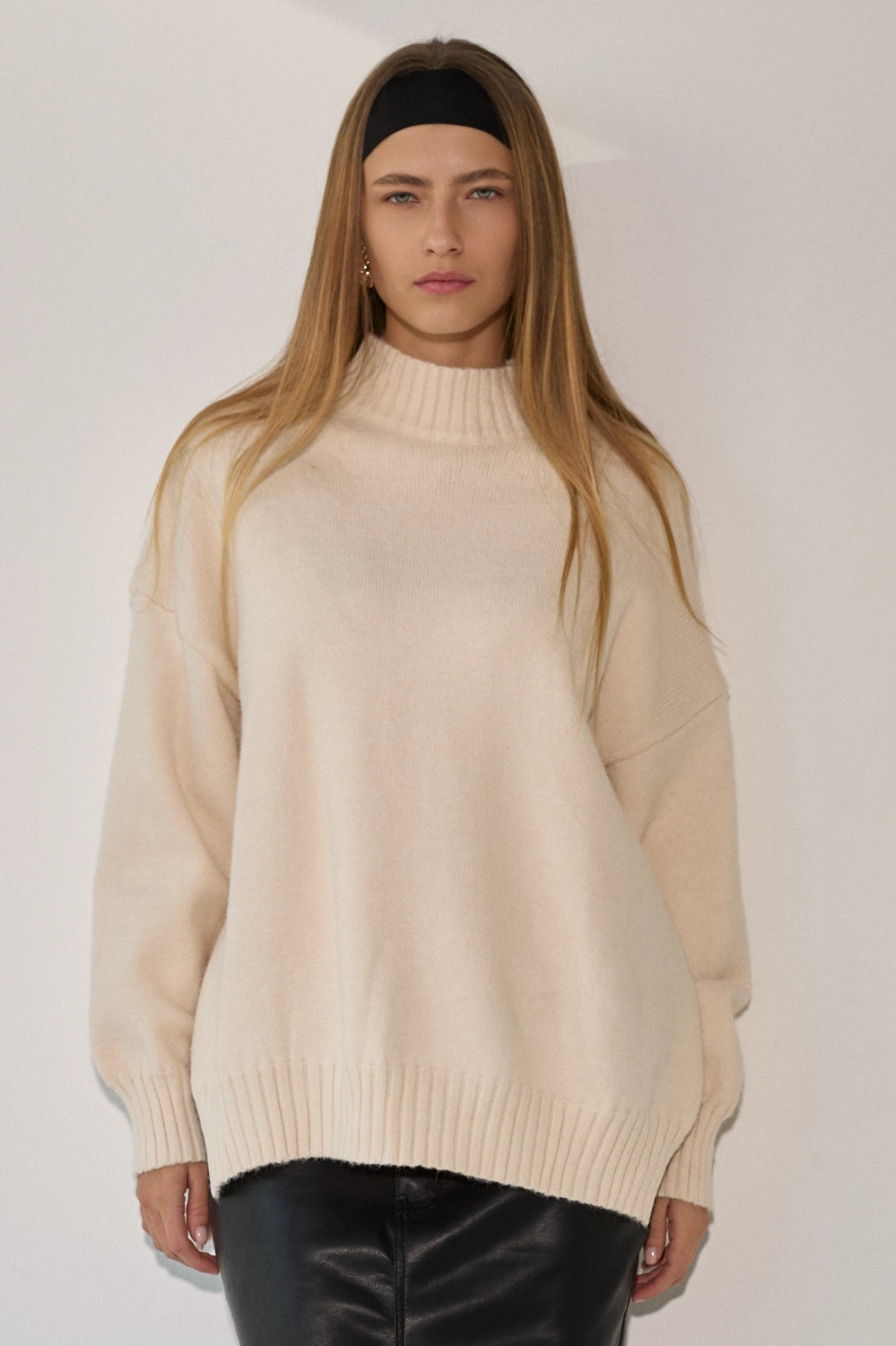 סריג רך ונעים במיוחד בדוגמת סיומת של פוטר, בגזרה רחבה ונוחה עם צווארון גבוה שמעניק מראה אלגנטי ומחמם. הסריג מעוצב בקו נקי וצנוע עם שסעים בצידי המותן המוסיפים תנועה ונוחות, ומתאים לכל אירוע – מיום יום בעבודה ועד לאירועים מיוחדים.