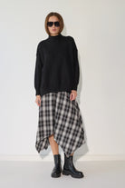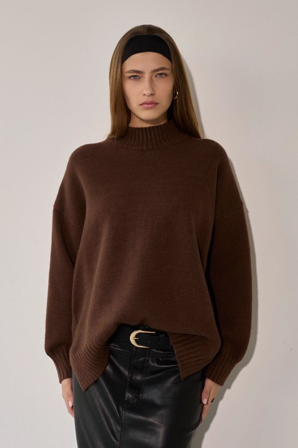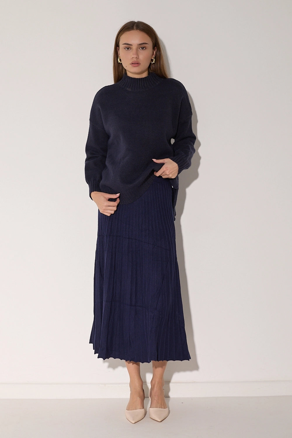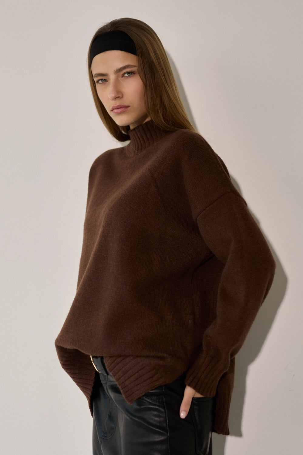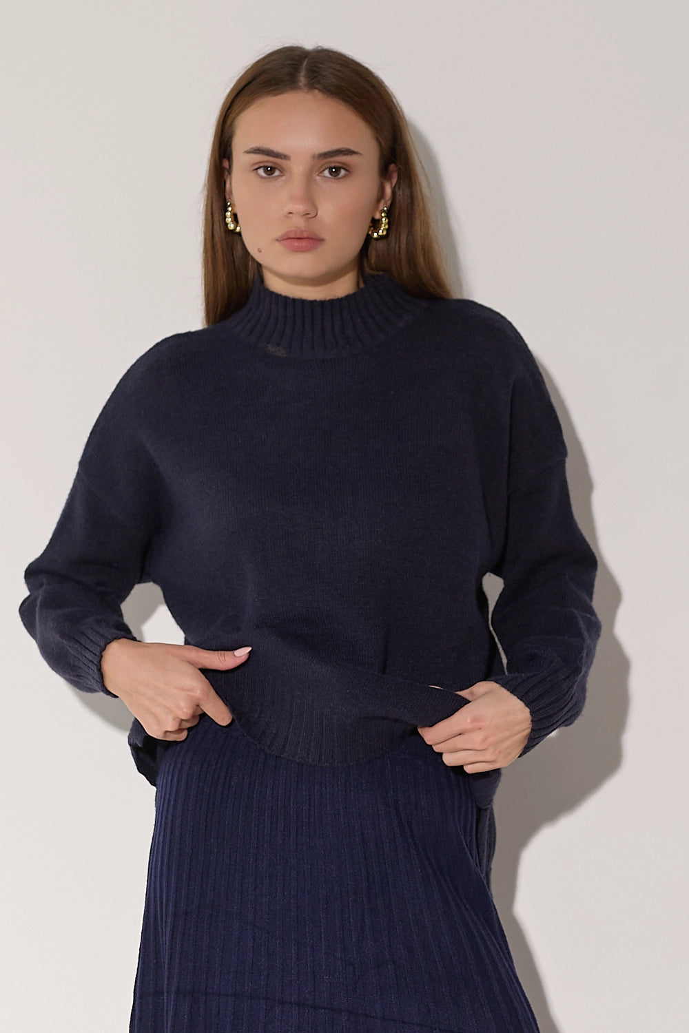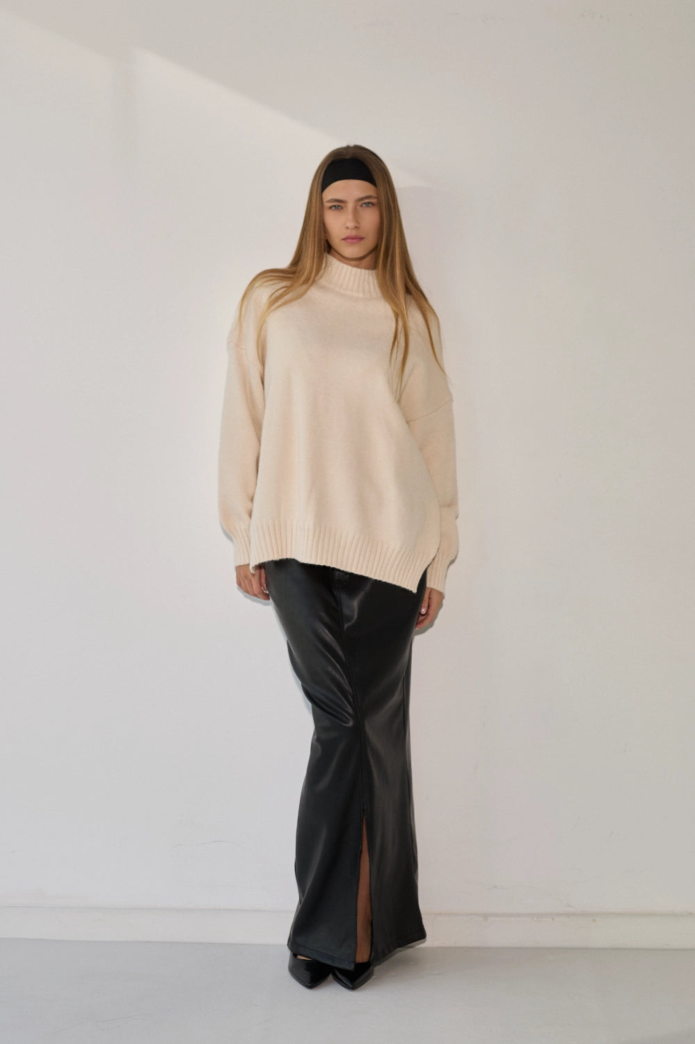 סריג רך ונעים במיוחד בדוגמת סיומת של פוטר, בגזרה רחבה ונוחה עם צווארון גבוה שמעניק מראה אלגנטי ומחמם. הסריג מעוצב בקו נקי וצנוע עם שסעים בצידי המותן המוסיפים תנועה ונוחות, ומתאים לכל אירוע – מיום יום בעבודה ועד לאירועים מיוחדים.