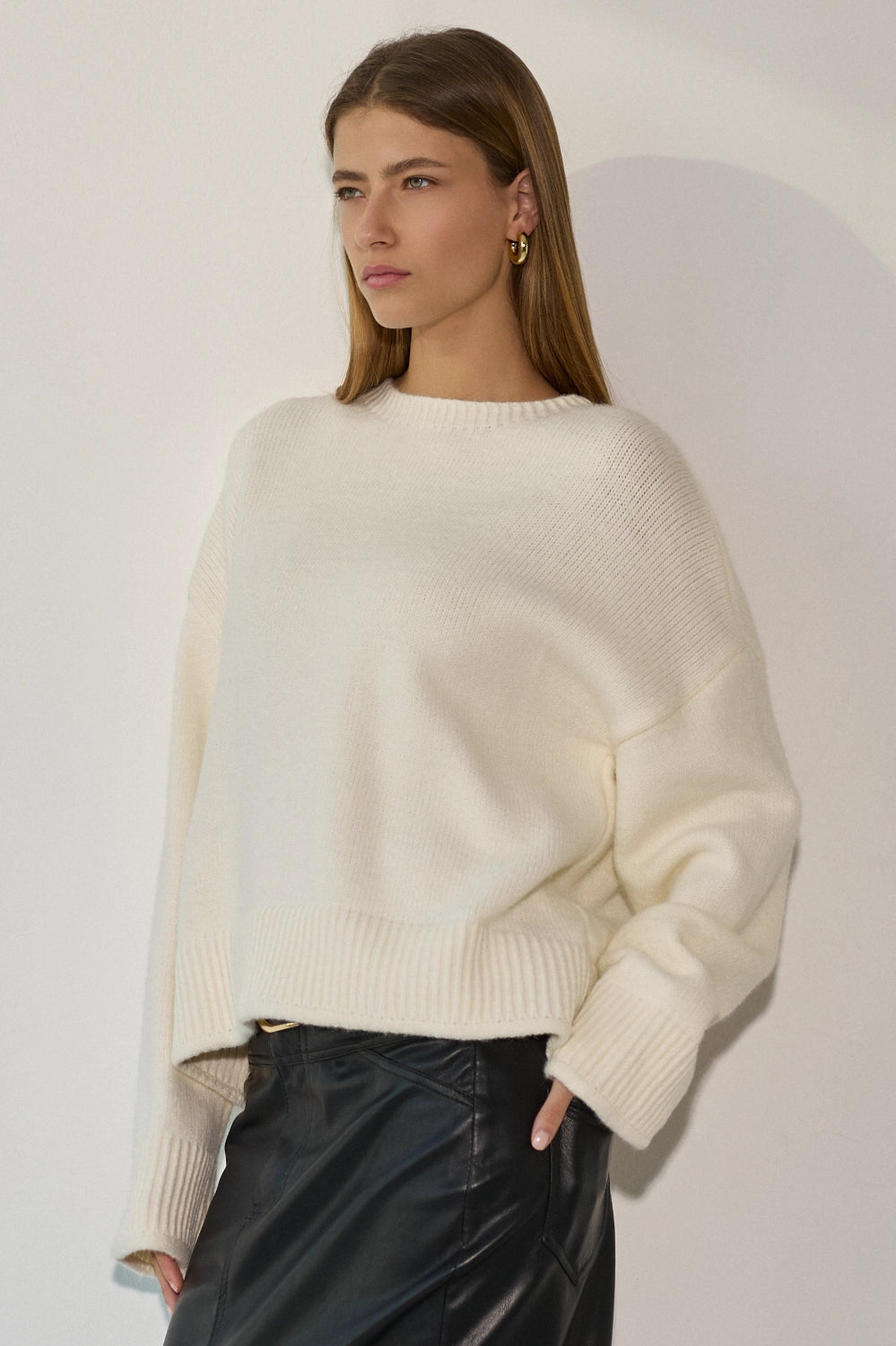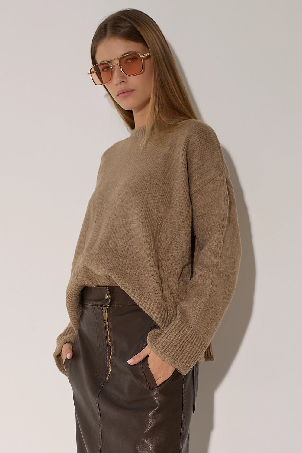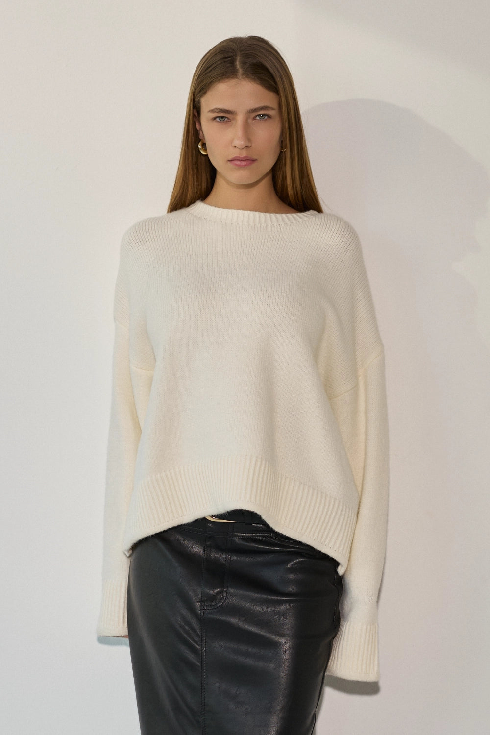 סריג רך ונעים במיוחד בסגנון פוטר עם טקסטורה מיוחדת. גזרה רחבה ונוחה עם צווארון עגול קלאסי. הסריג מעוצב עם שרוולים רחבים וסיומת ריב אלגנטית בשרוולים ובתחתית, שמוסיפים מראה מעודן ומחמיא. מושלם לכל אירוע – מיום יום בעבודה ועד לאירועים מיוחדים.