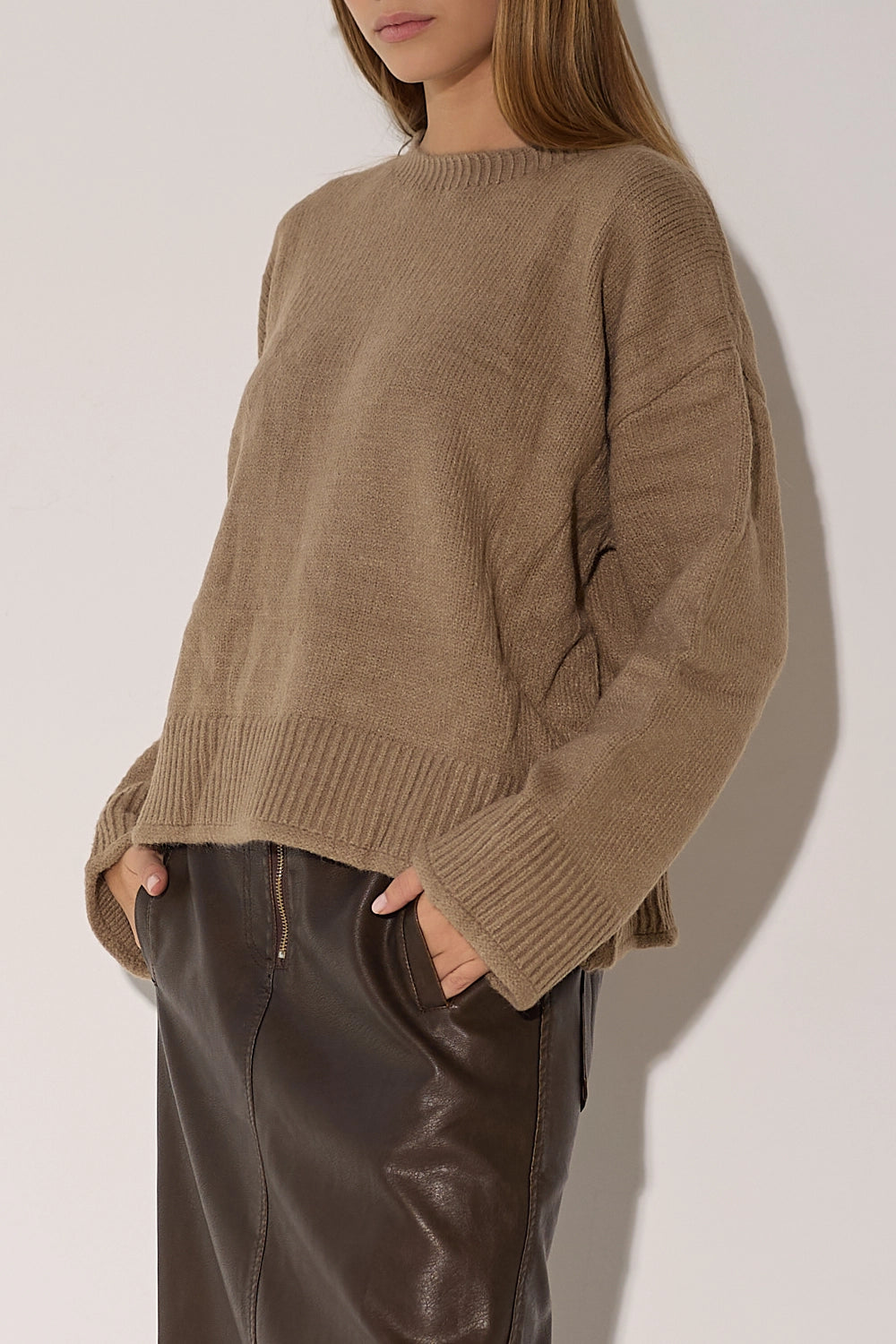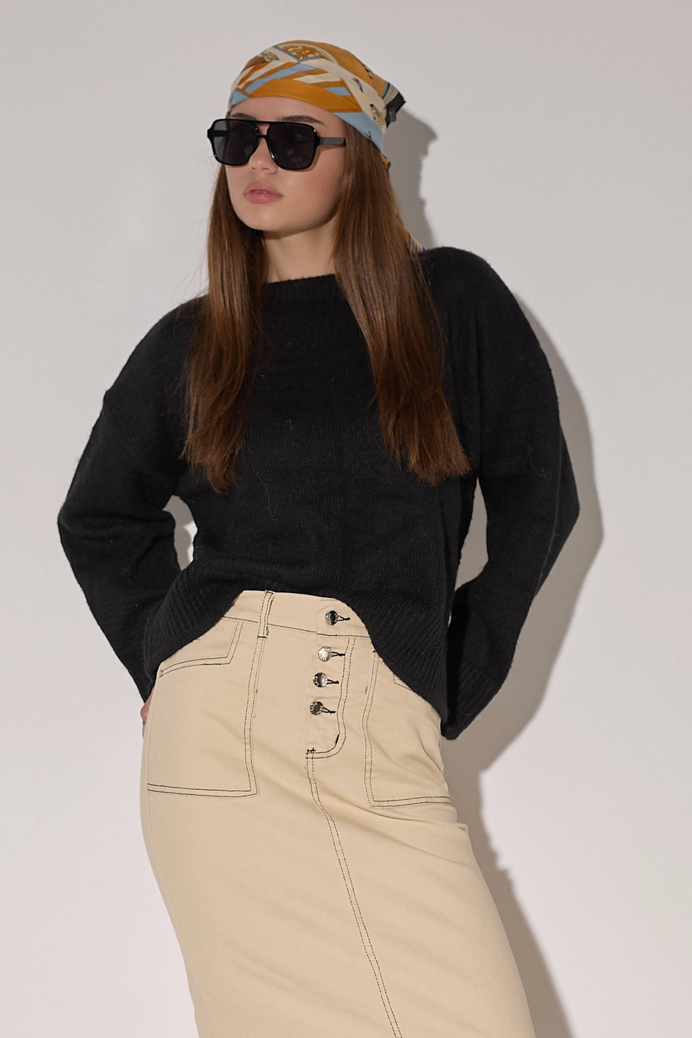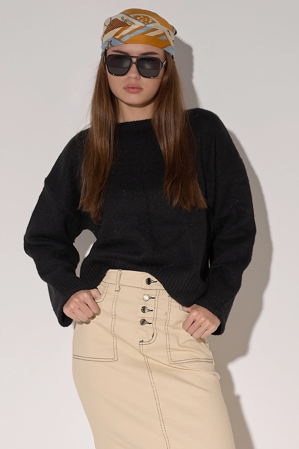 סריג רך ונעים במיוחד בסגנון פוטר עם טקסטורה מיוחדת. גזרה רחבה ונוחה עם צווארון עגול קלאסי. הסריג מעוצב עם שרוולים רחבים וסיומת ריב אלגנטית בשרוולים ובתחתית, שמוסיפים מראה מעודן ומחמיא. מושלם לכל אירוע – מיום יום בעבודה ועד לאירועים מיוחדים.