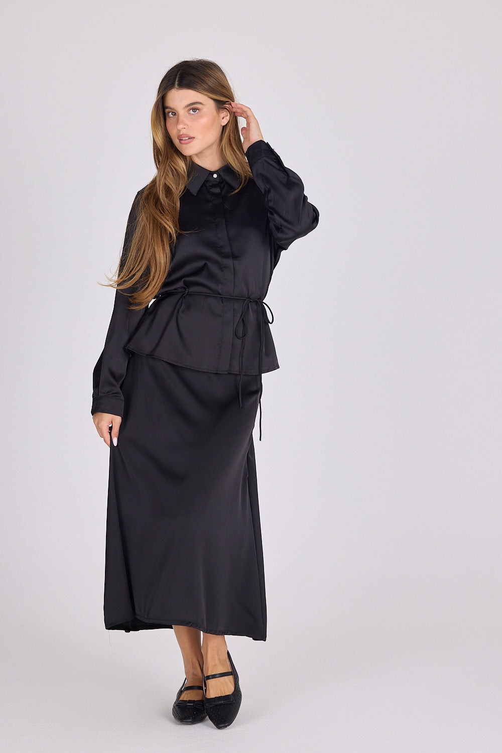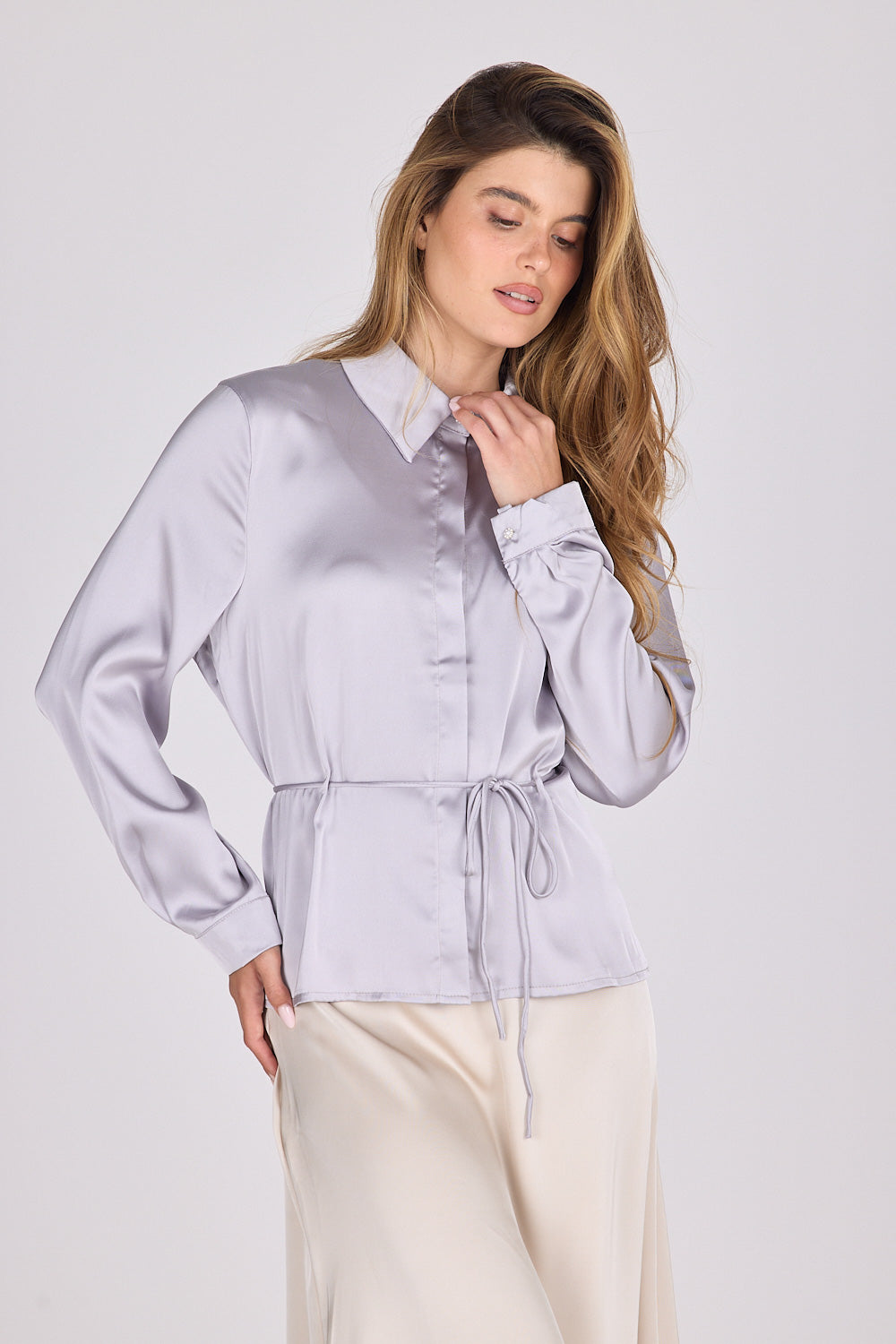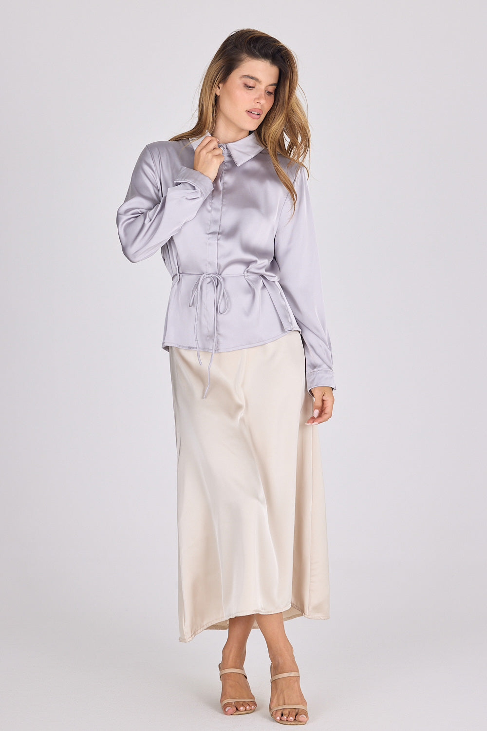 חולצה מכופתרת סאטן פזית
