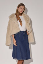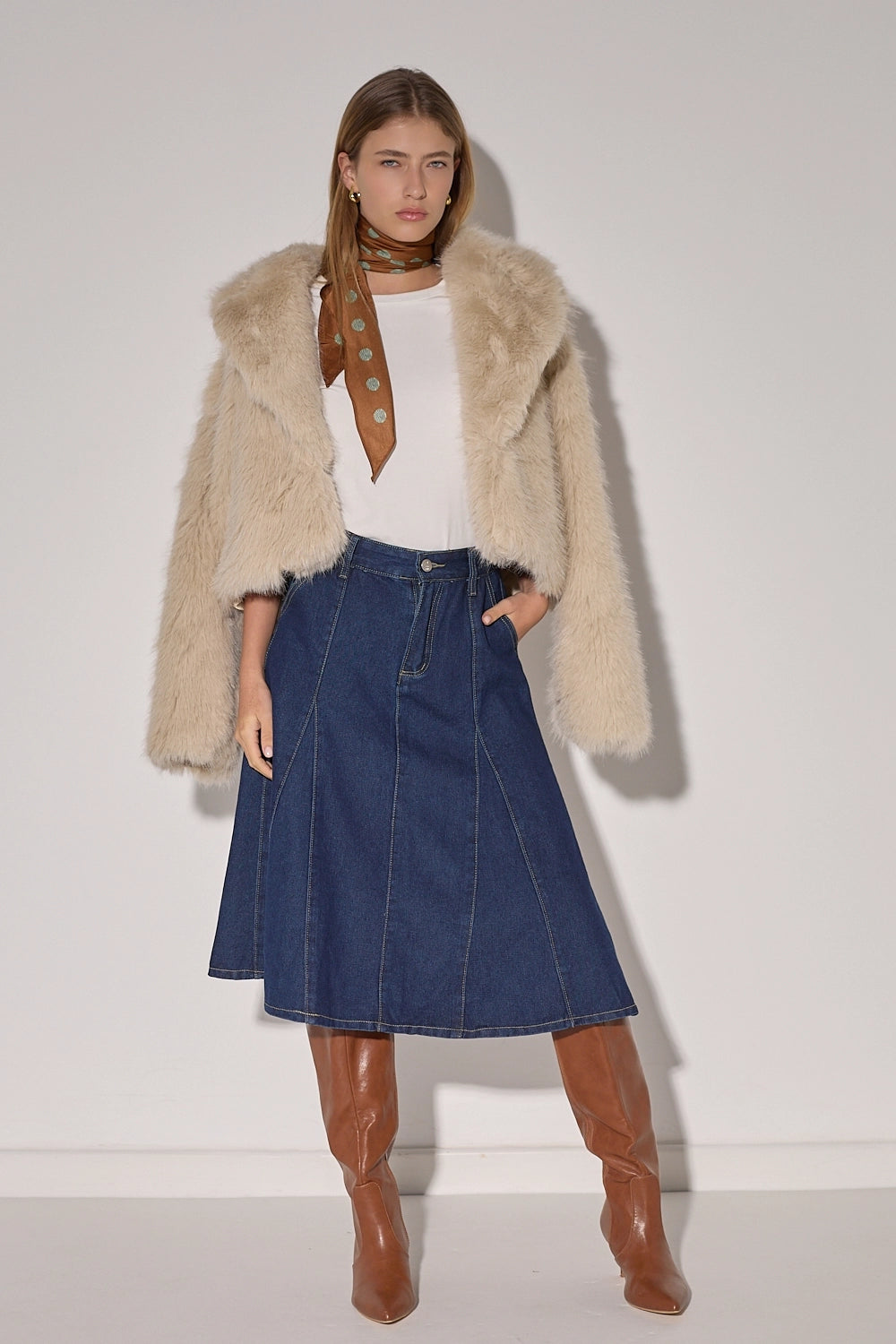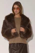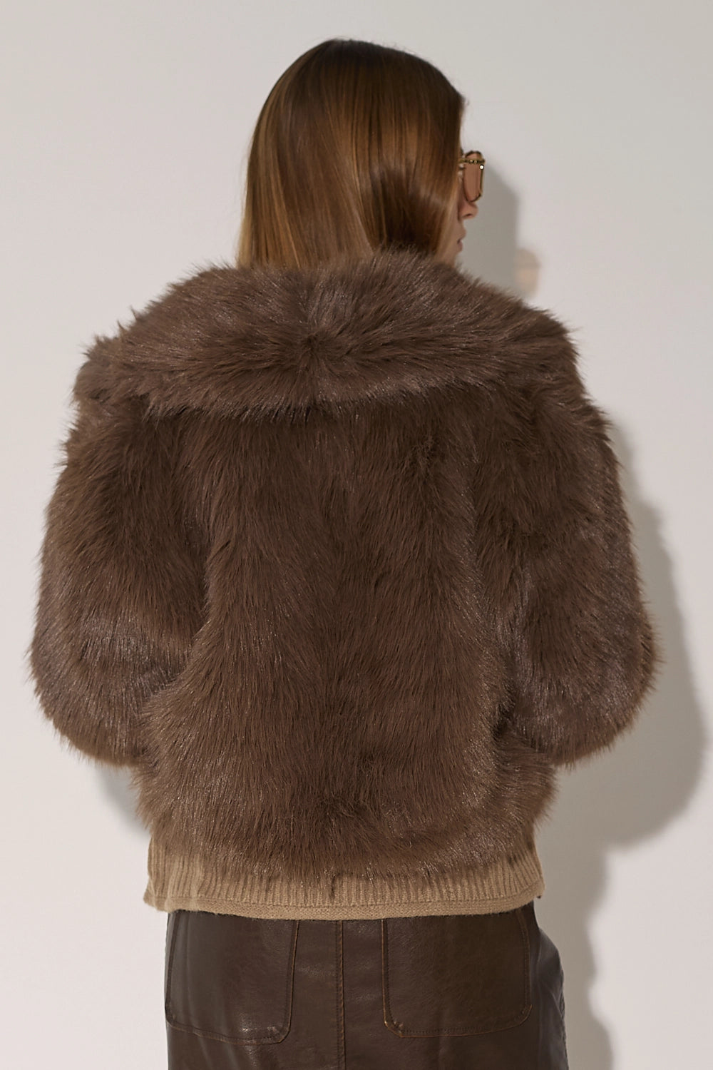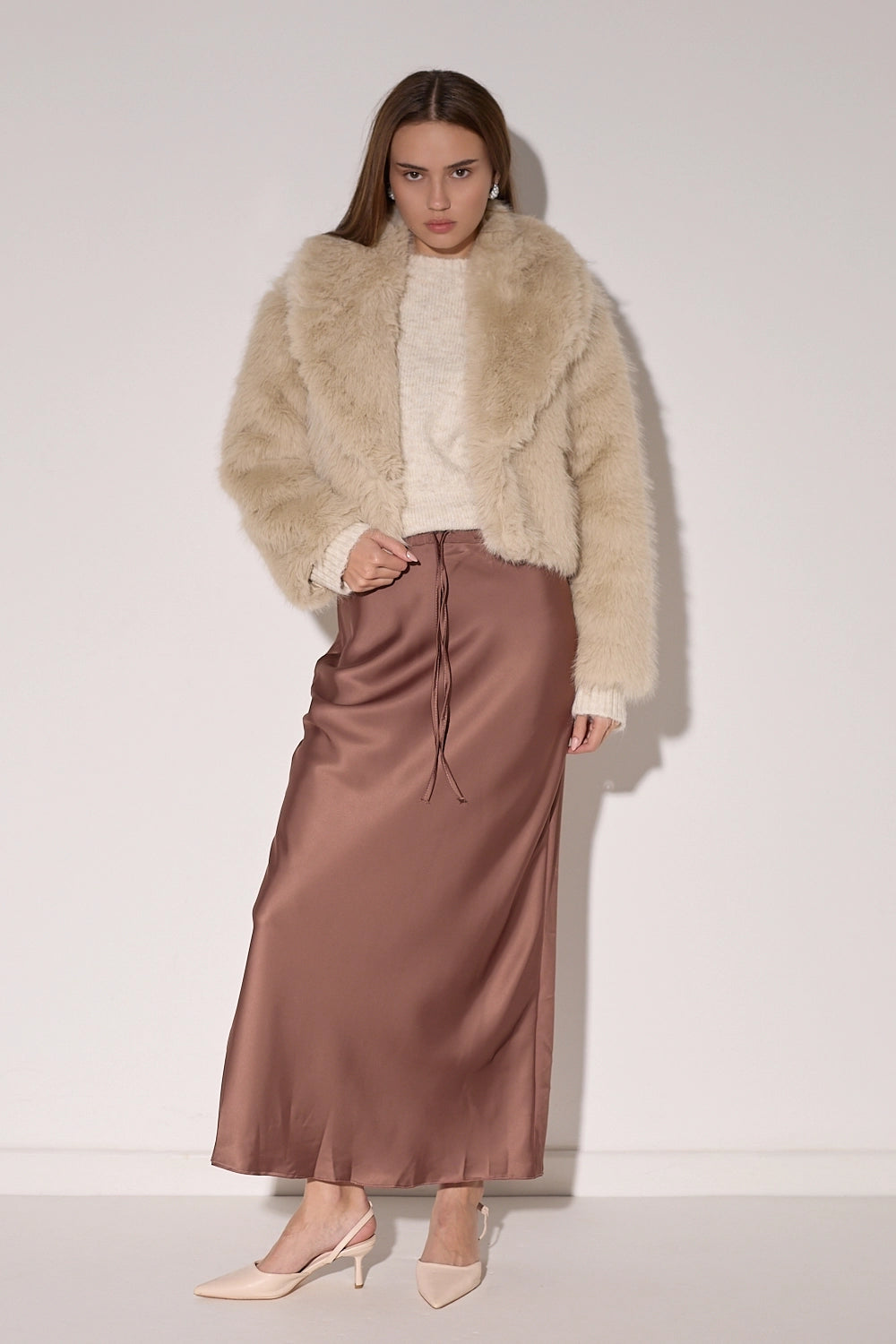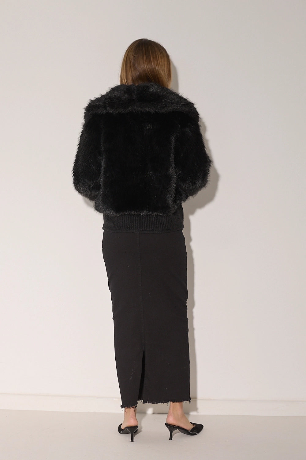 ג'קט פרוותי ומפואר, במרקם רך ונפוח שמשדר אלגנטיות רכה ומחממת. גזרת הקרופ האופנתית והשרוולים הארוכים יוצרים סילואט מחמיא ומעודן, בעוד הפרווה מעניקה תחושת יוקרה ונוחות מקסימלית שיהפוך כל לוק למיוחד.