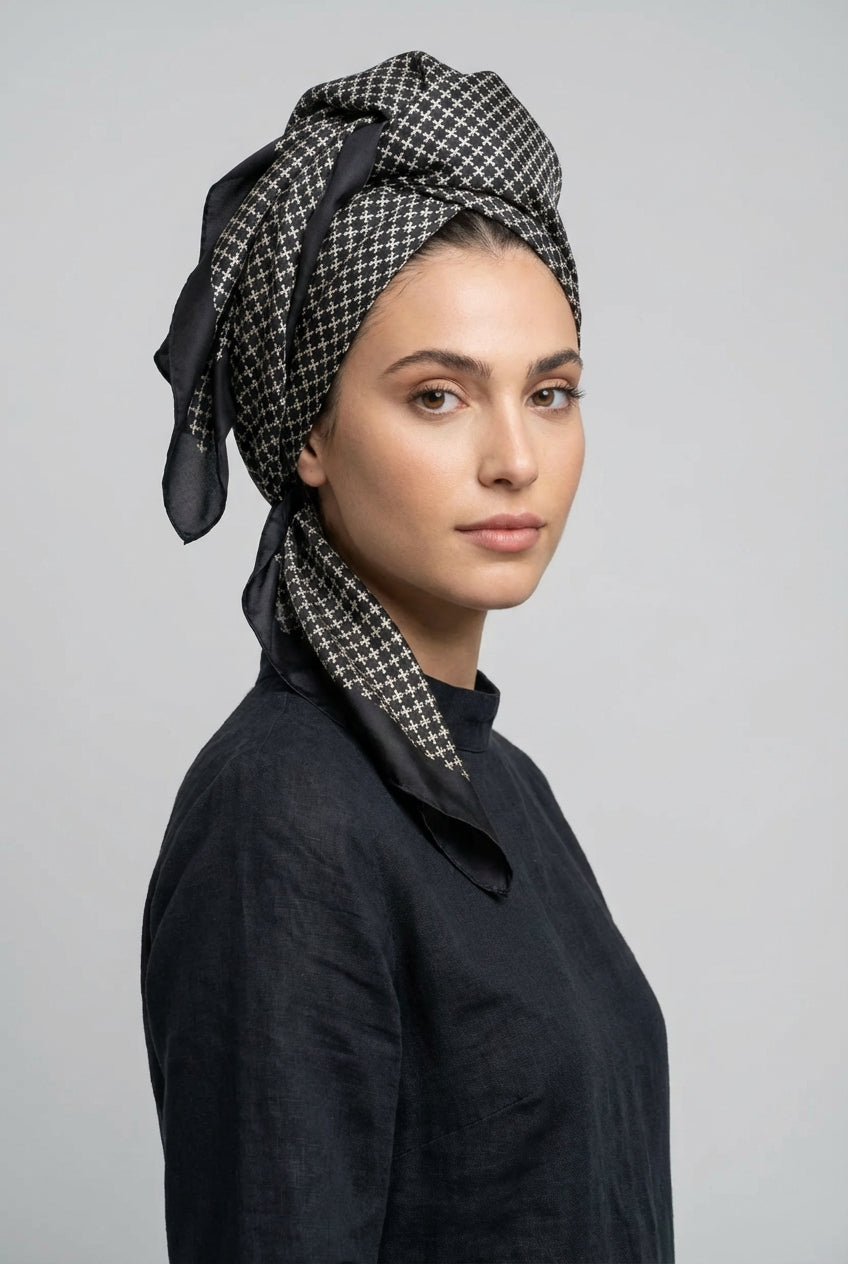 מטפחת משי מרובעת פטרן גיאומטרי