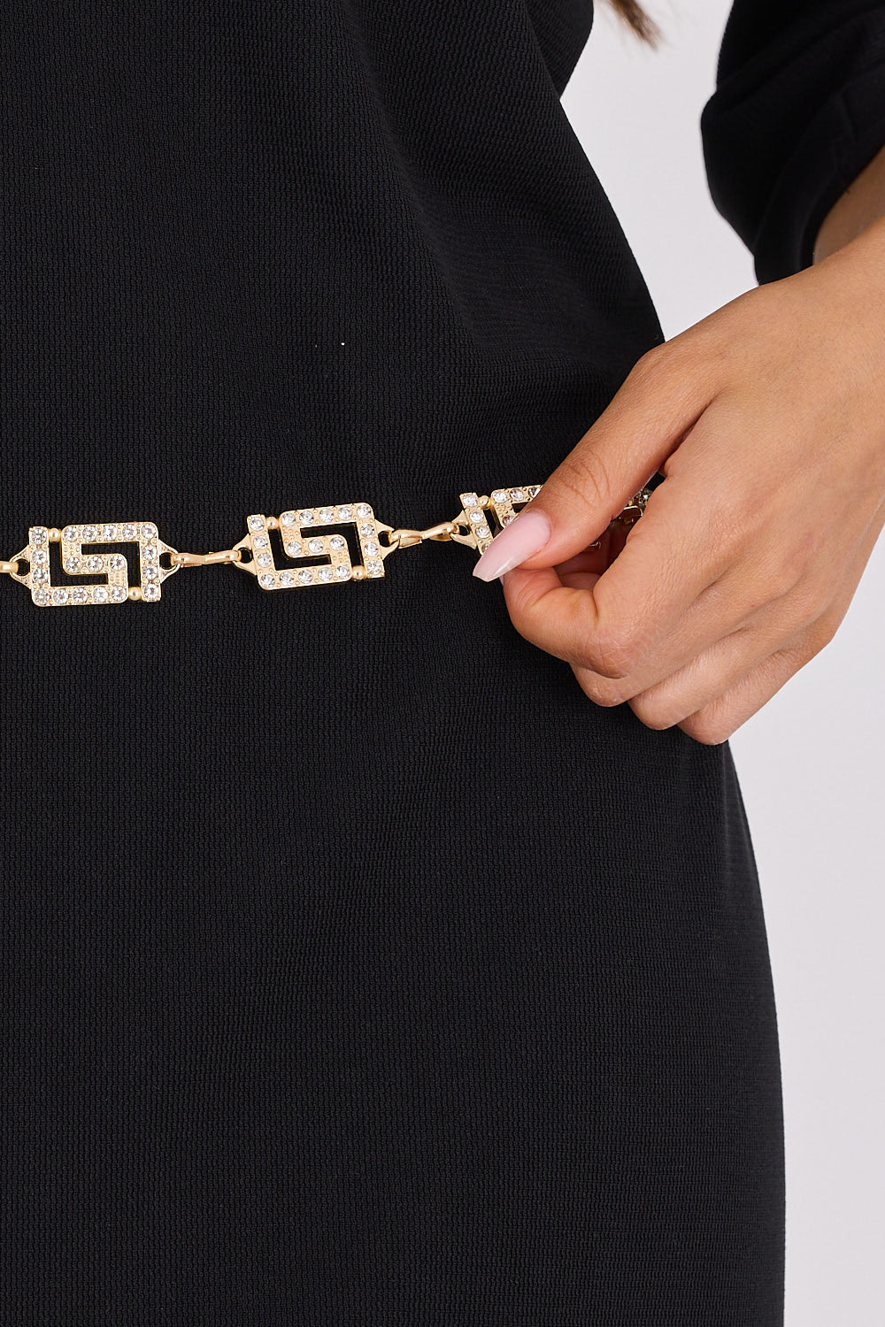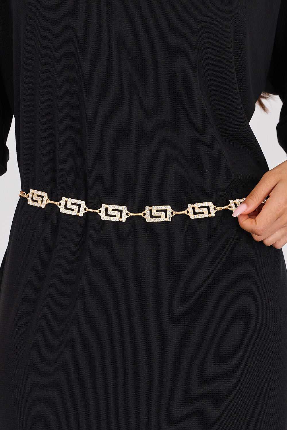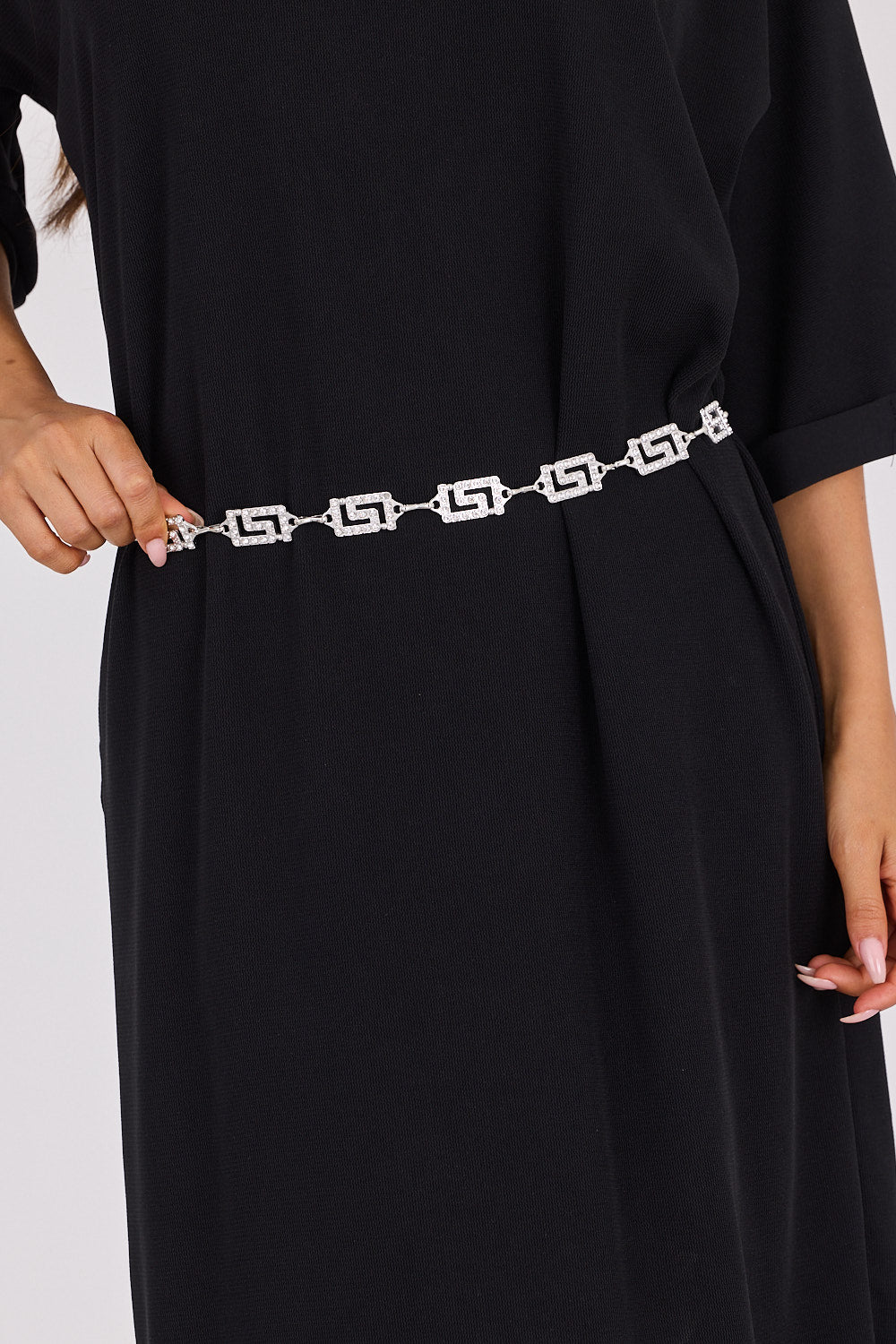 חגורה שרשרת חוליות משולבת בעיצוב גיאומטרי עם אבנים