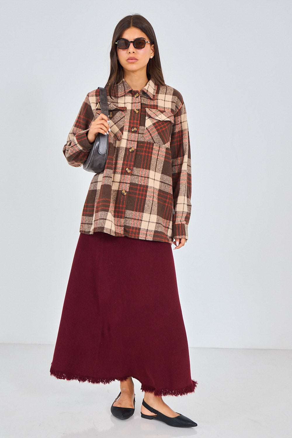 חולצה מכופתרת משבצות פלנל