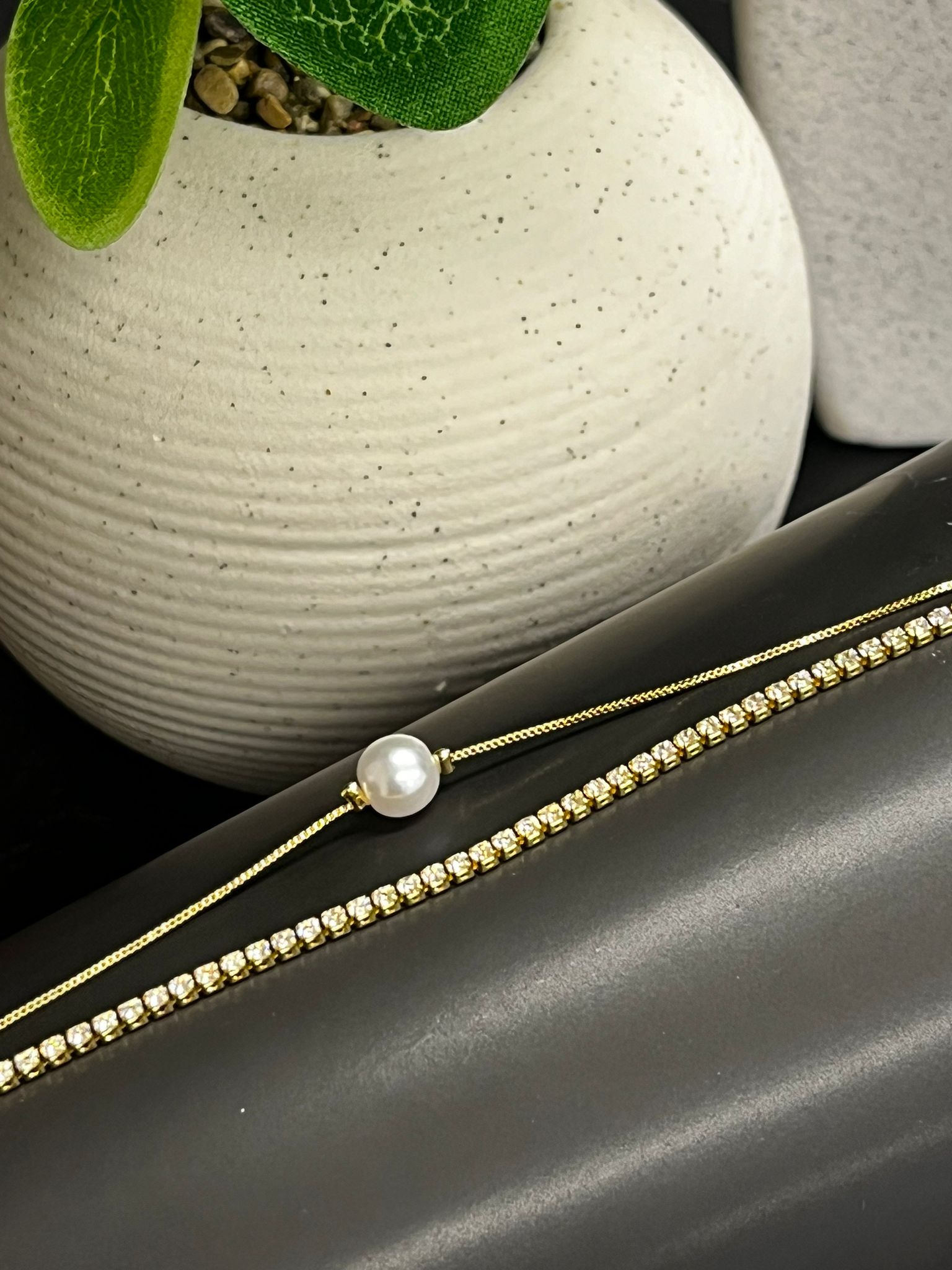 Gold tennis bracelet with pearl