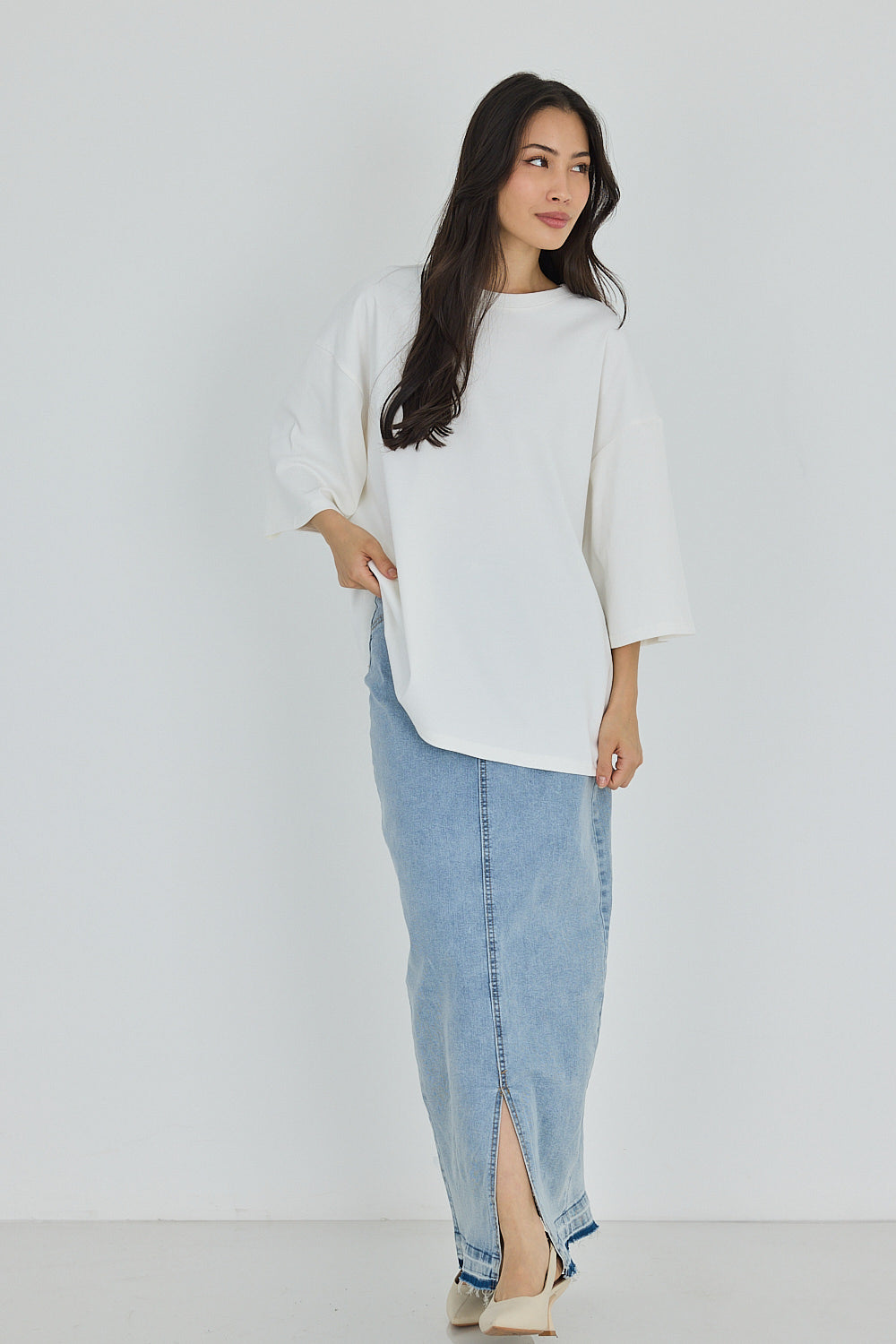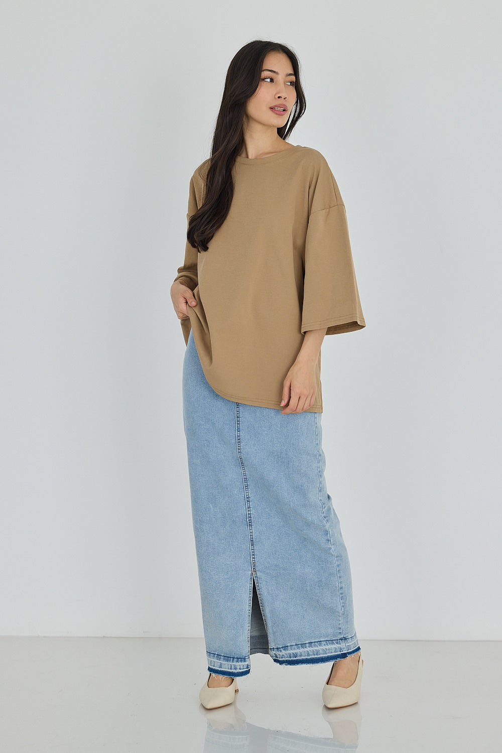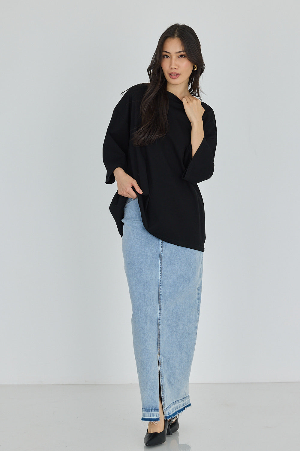 FRONT DRILL MAXI SKIRT