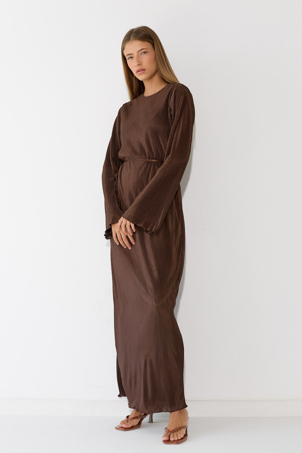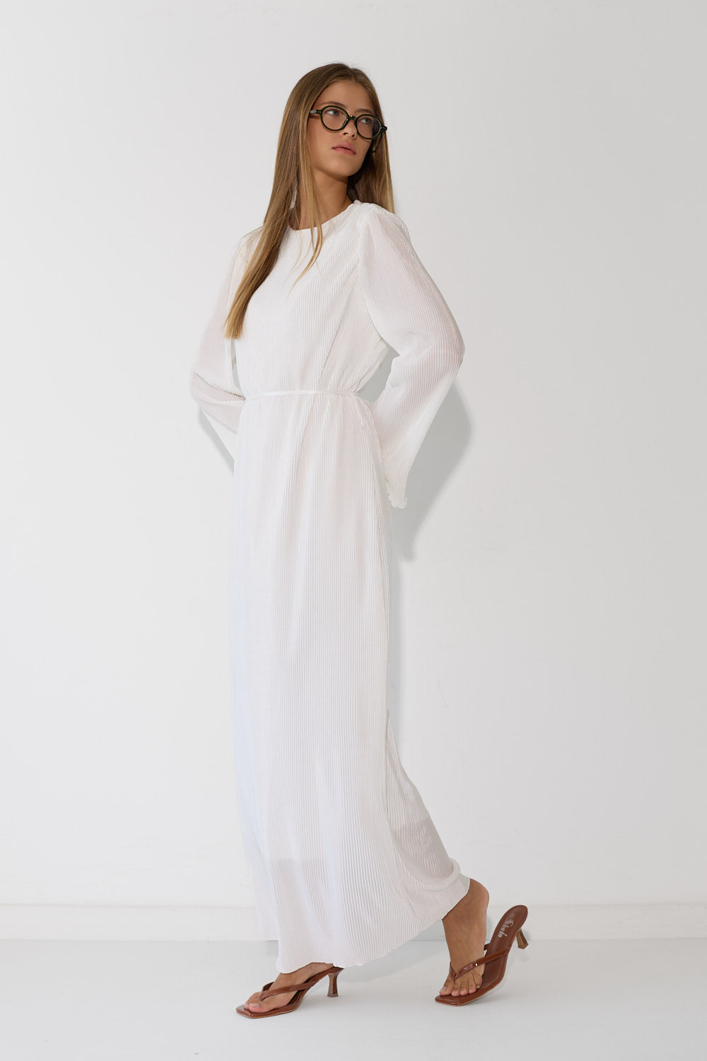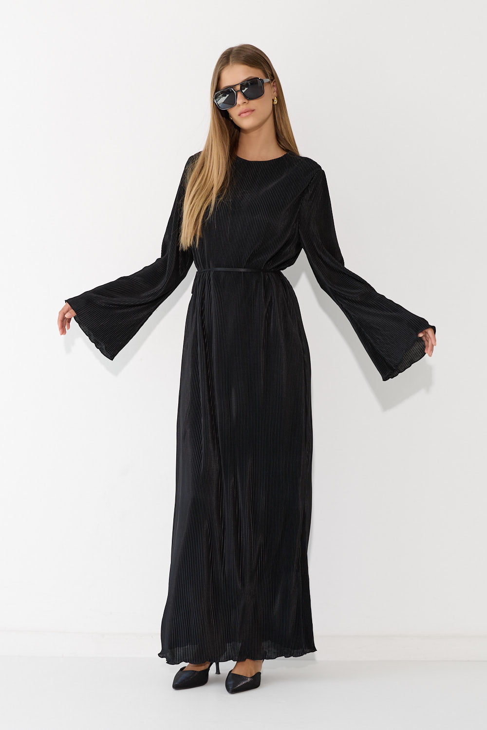 שמלת פליסה בגזרה זורמת ומחמיאה, עם בד פליסה עדין שמשדר תנועה ואלגנטיות בכל צעד. גזרה נשית ומחמיאה שמתאימה לאירוע מיוחד ולכל יום שרוצים להרגיש מיוחדת. לבשי אותה עם סנדלים שטוחים לסטייל קז'ואל יומיומי, עם עקבים לאירוע ערב מחמיא, או עם מגפיים ללוק משוחרר.