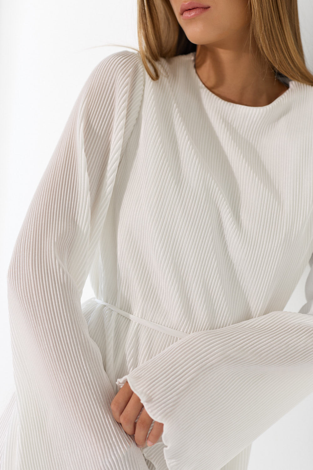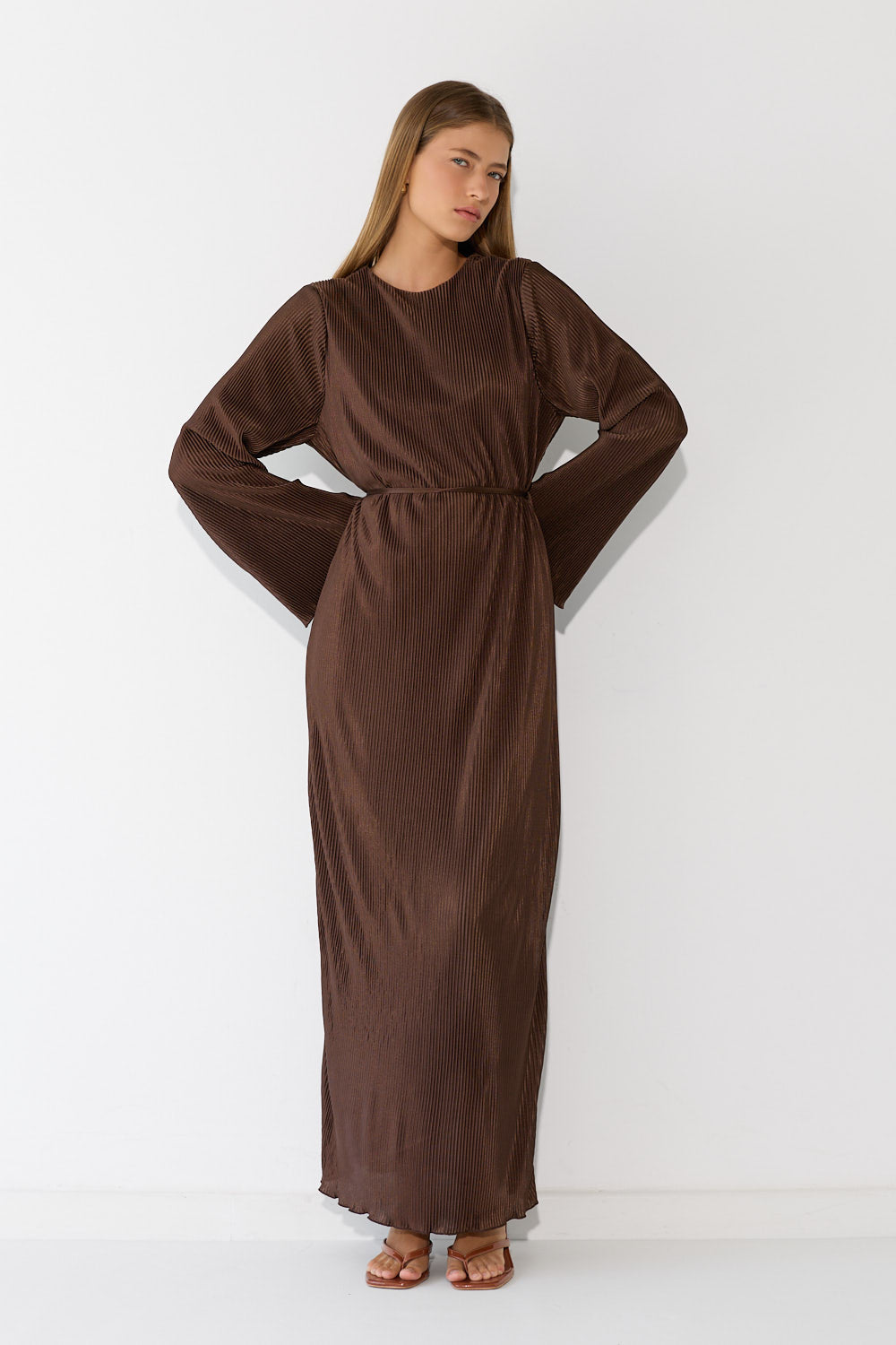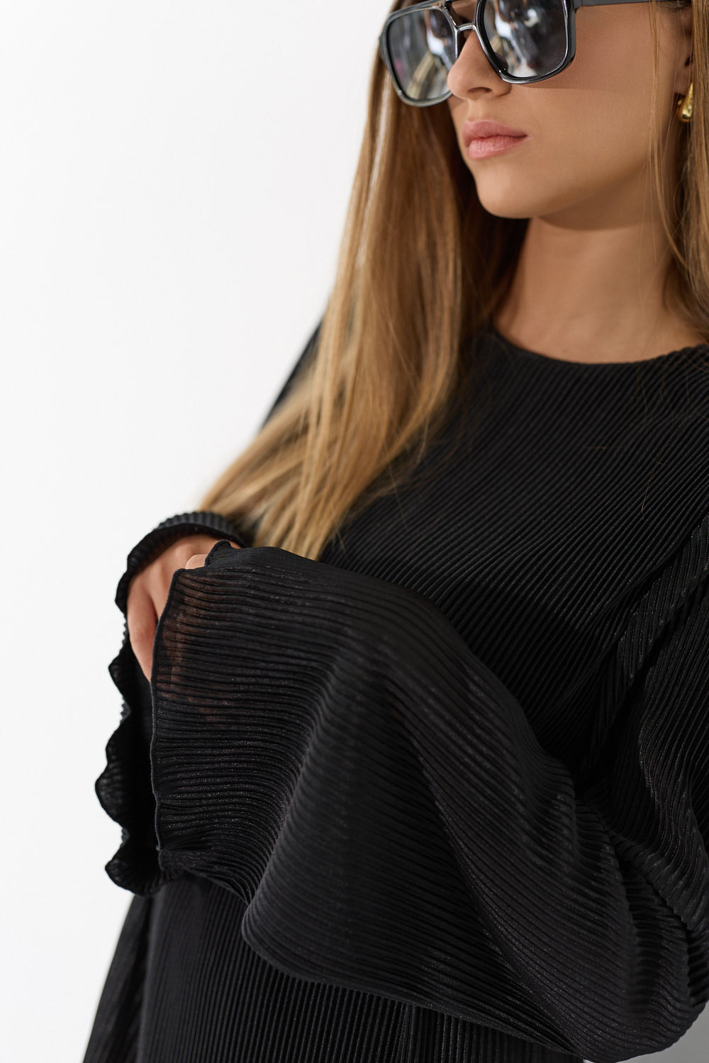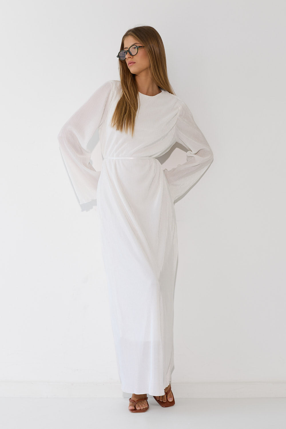 שמלת פליסה בגזרה זורמת ומחמיאה, עם בד פליסה עדין שמשדר תנועה ואלגנטיות בכל צעד. גזרה נשית ומחמיאה שמתאימה לאירוע מיוחד ולכל יום שרוצים להרגיש מיוחדת. לבשי אותה עם סנדלים שטוחים לסטייל קז'ואל יומיומי, עם עקבים לאירוע ערב מחמיא, או עם מגפיים ללוק משוחרר.
