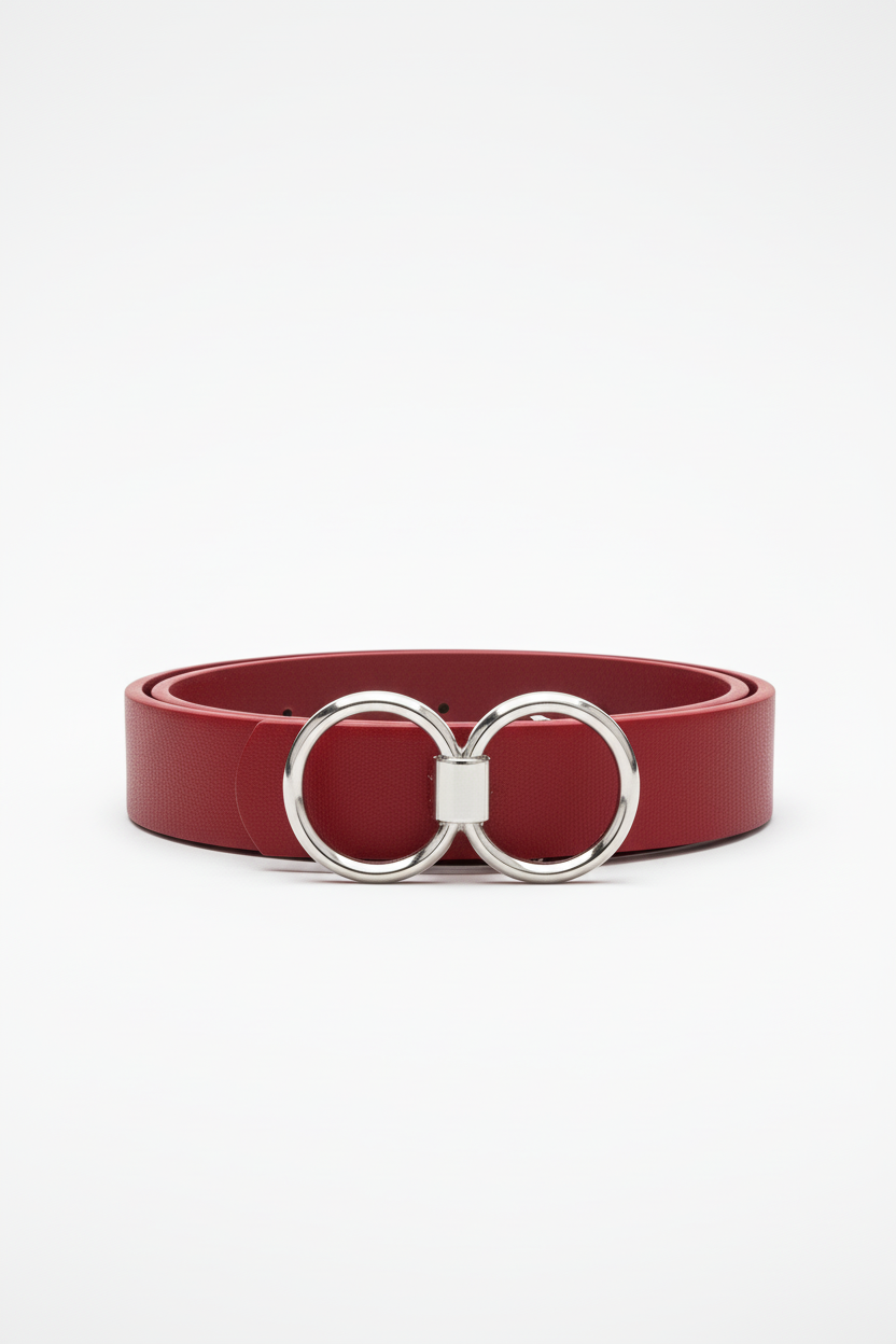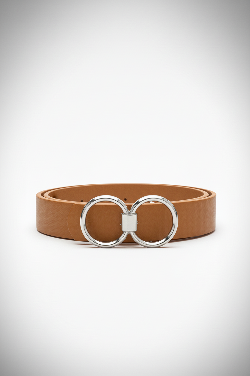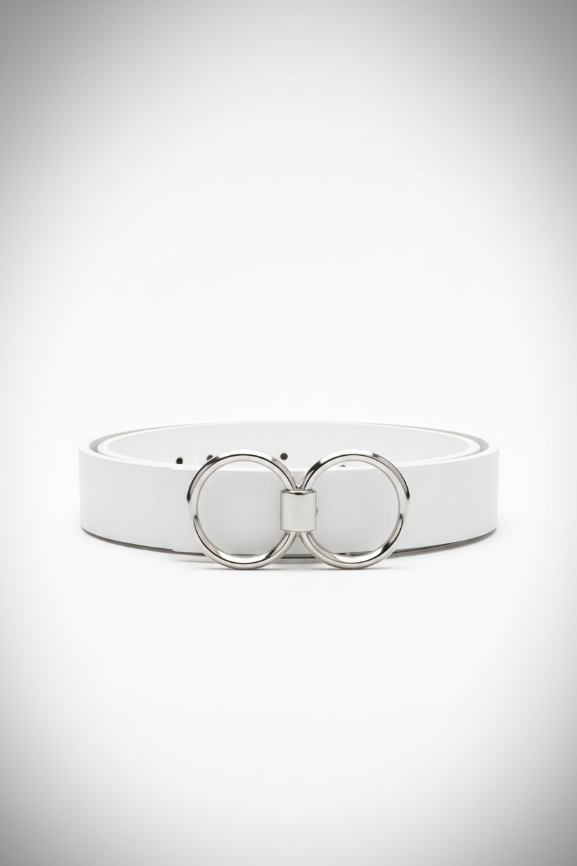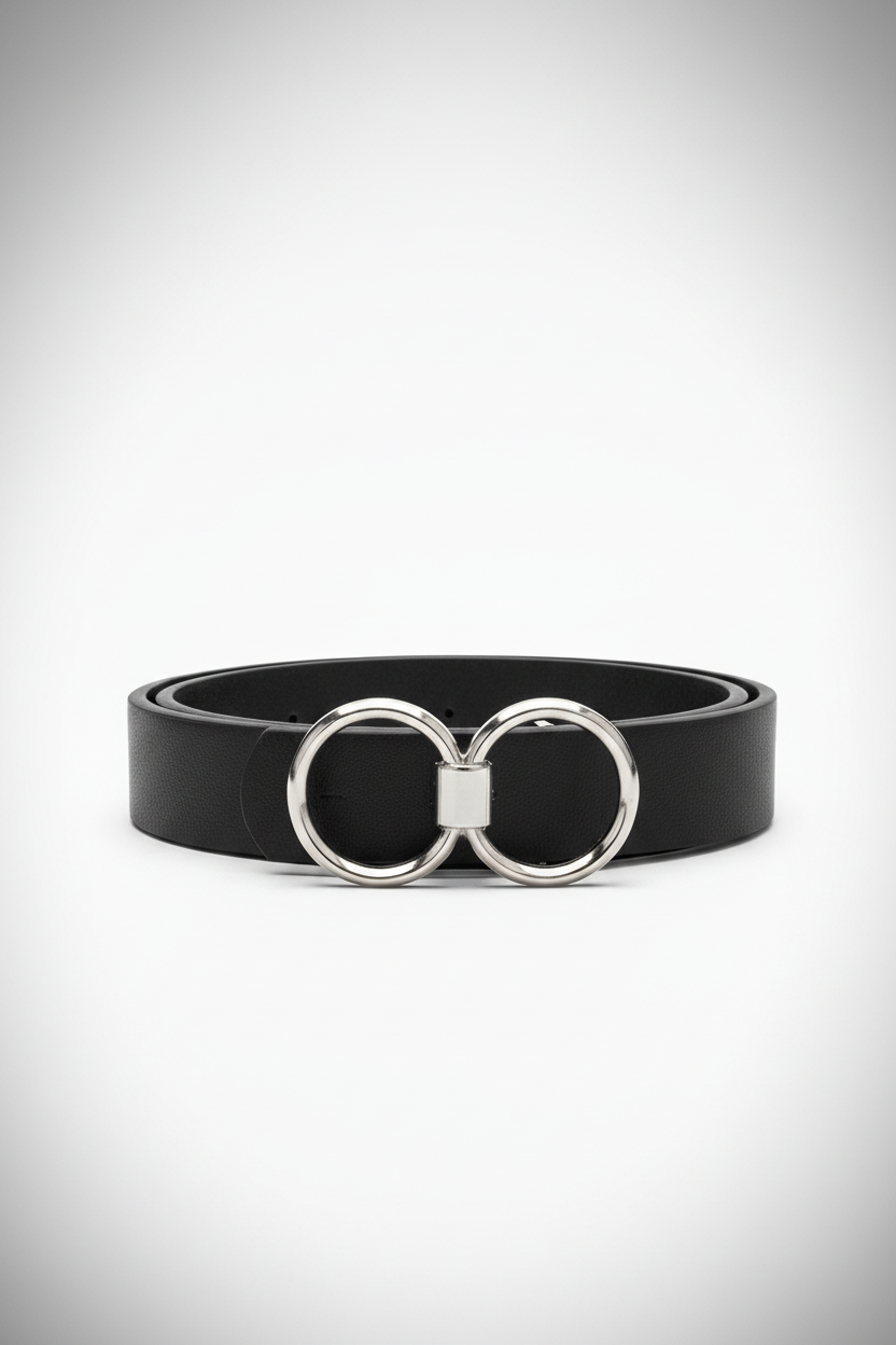חגורה דמוי עור אבזם סיכה עיגול כפול | כסף