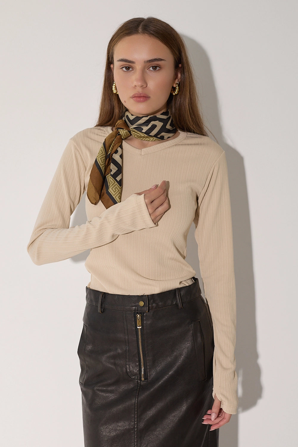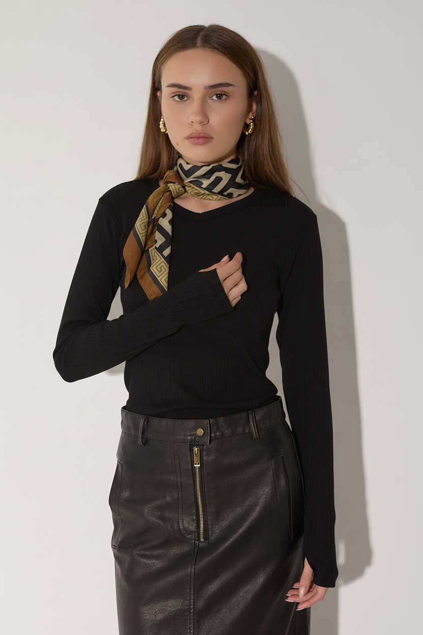 חולצה עם שרוול בגזרת כפפה וצווארון ה-V המחמיא יוצרים סילואט מושלם שמתאים לכל אירוע חולצת בייסיק שמתאימה לך בכל לוק.