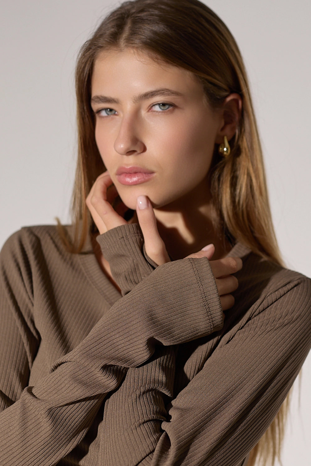 - צווארון V עדין שמאריך את הצוואר ומחמיא לכל מבנה גוף
