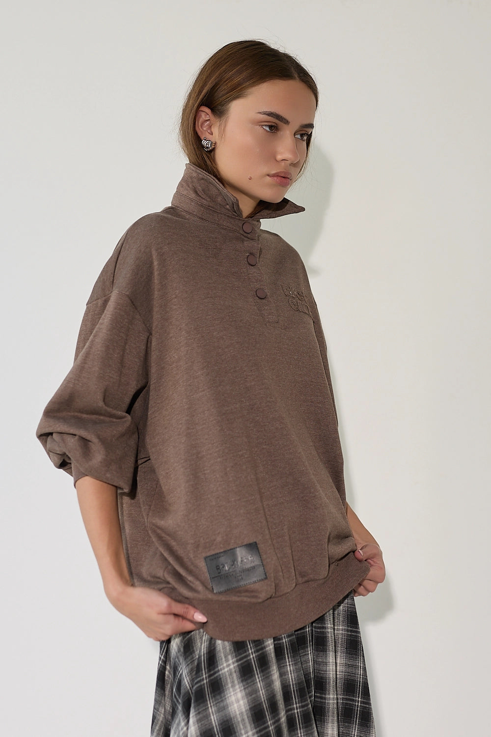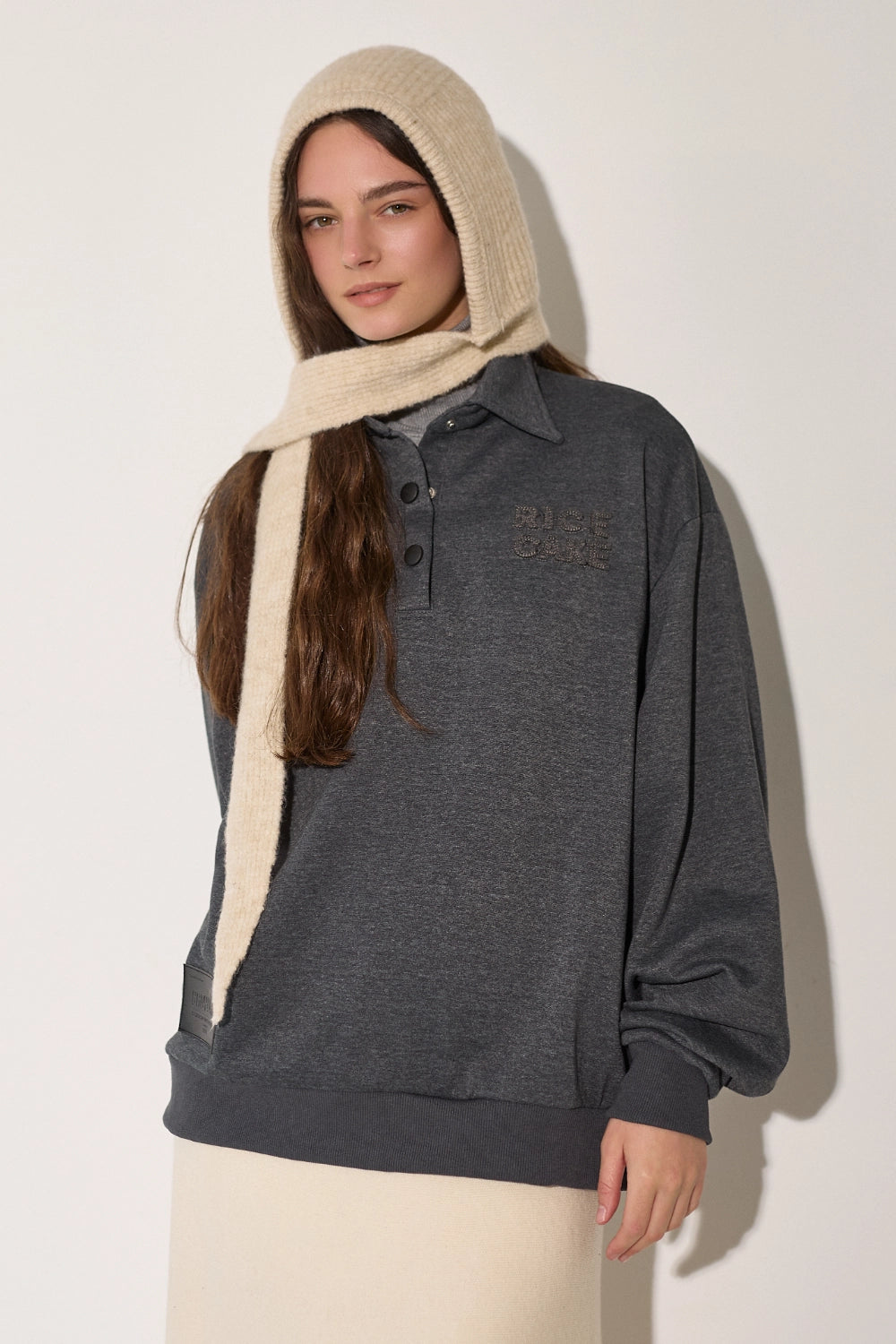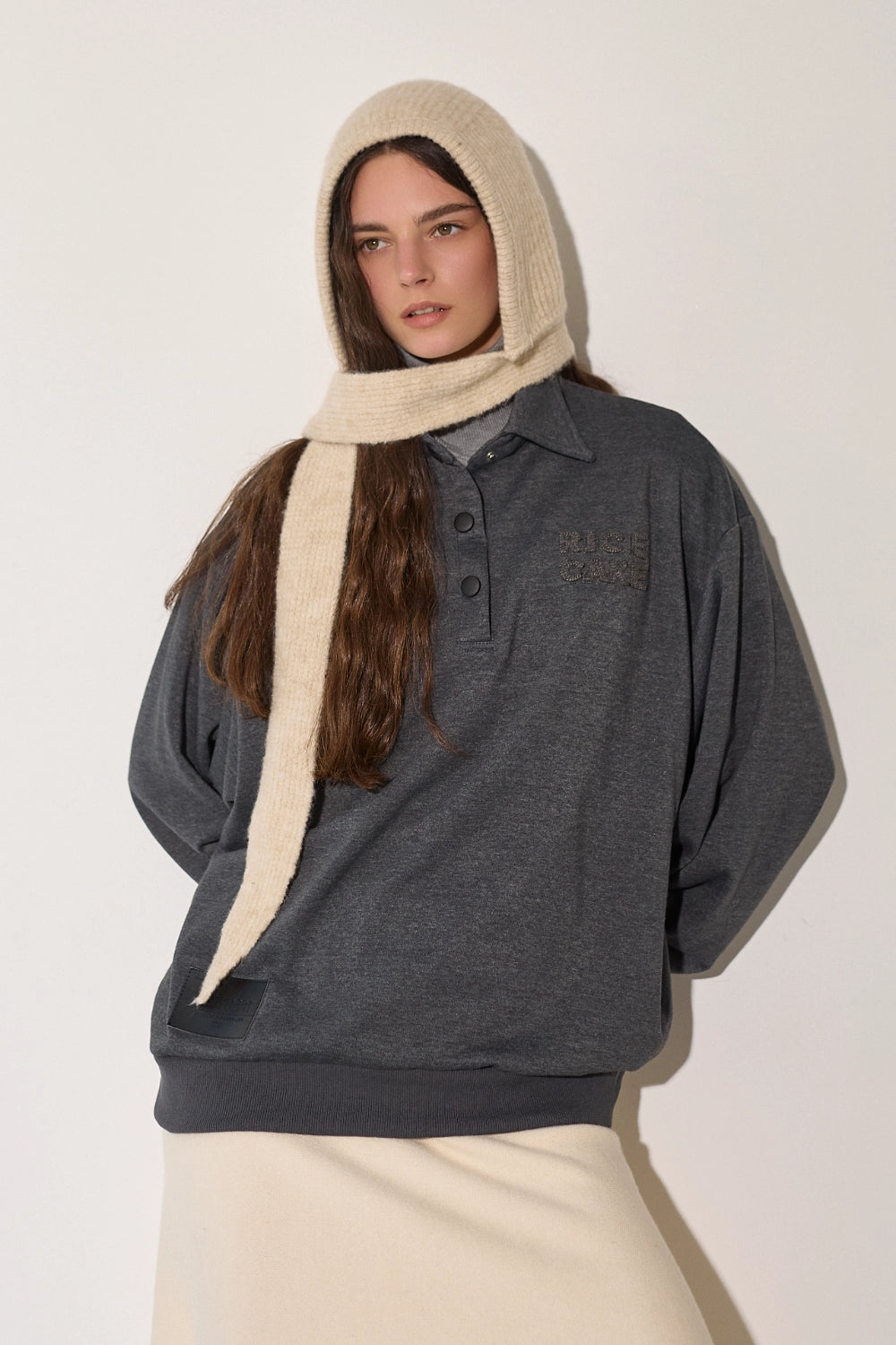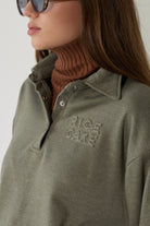 חולצת צווארון סווטשרט, בסגנון פולו בגיזרת אוברסייז נוחה ומחמיאה עם דיטלס ייחודיים, ליצירת לוק ספורטיבי-שיק שמתאים לכל יום – מיום רגוע ועד ליום פעיל יותר מבלי להתפשר על סטייל.