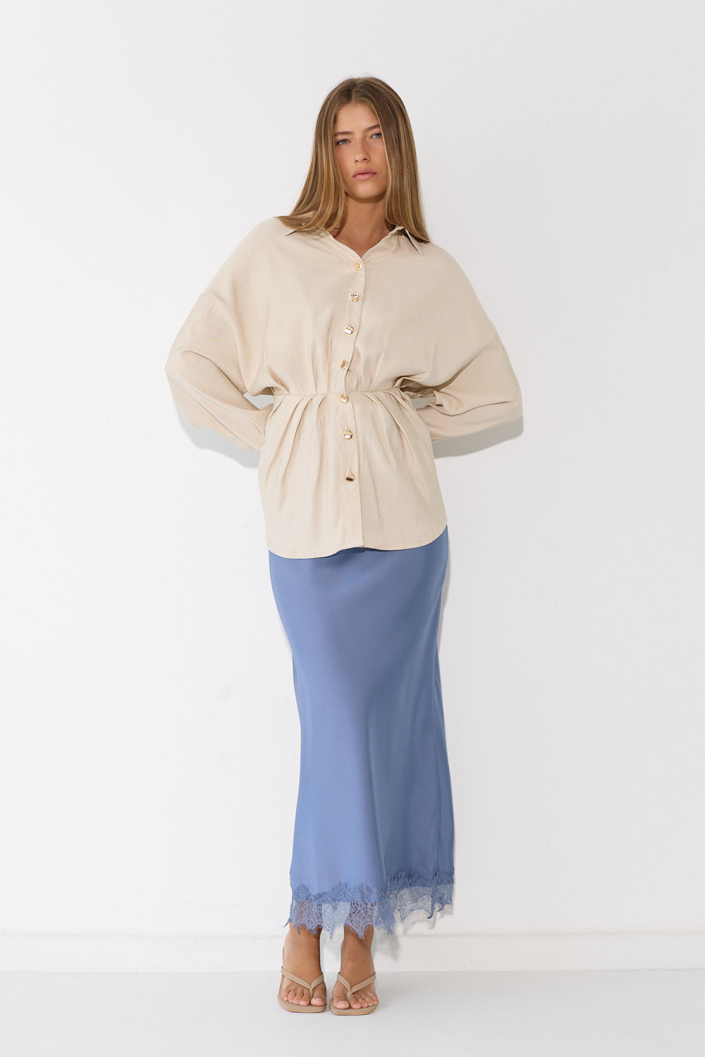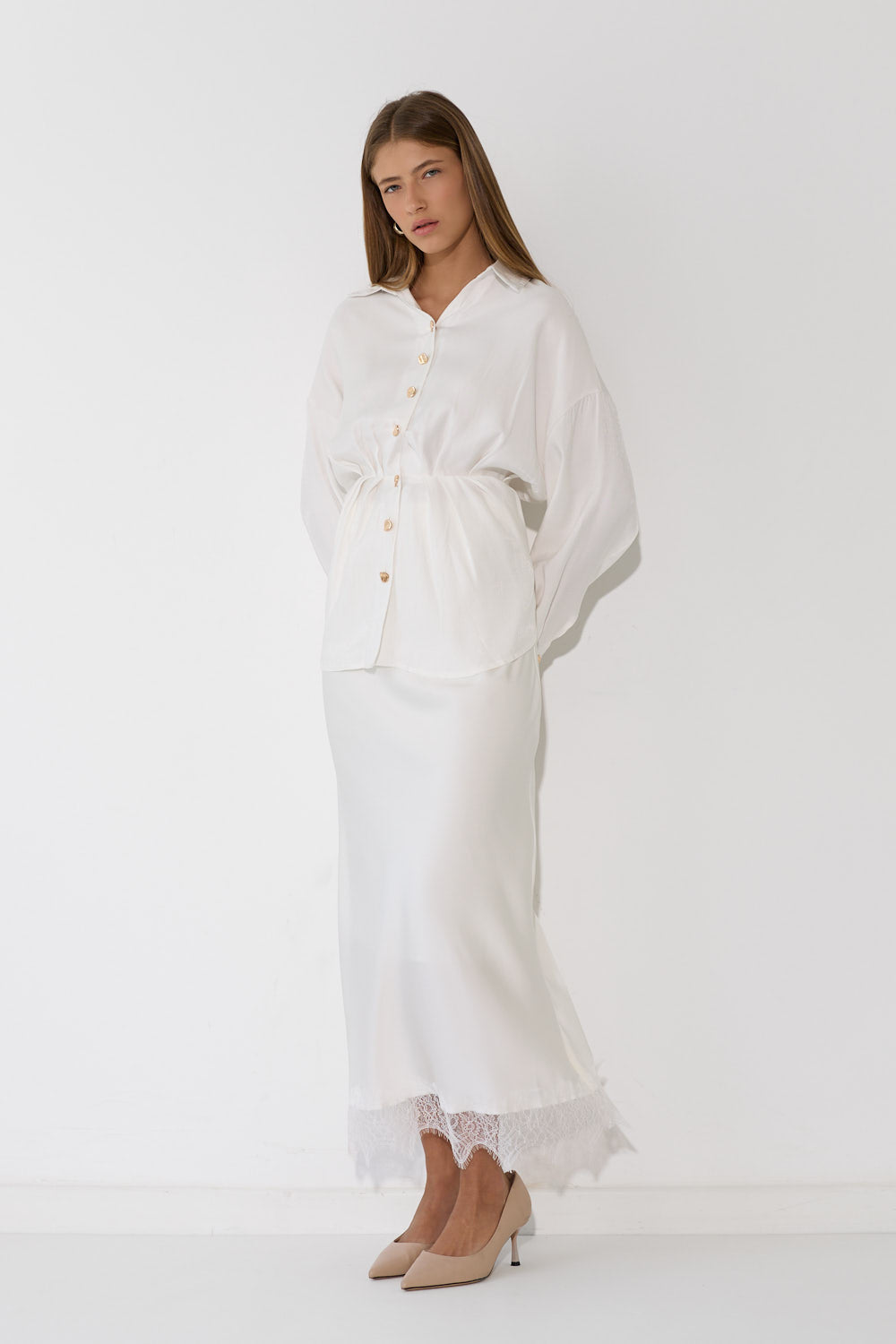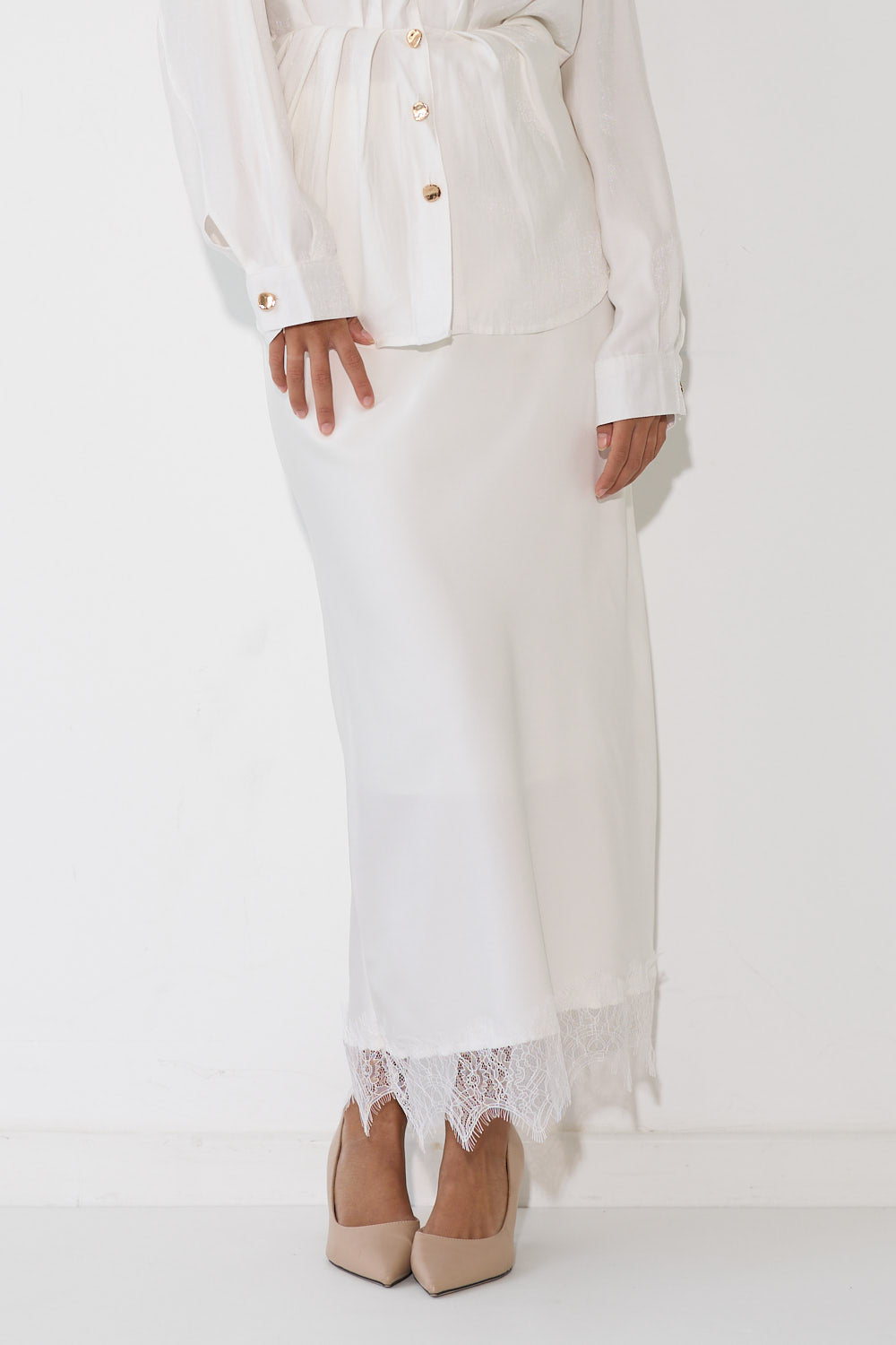 חצאית סאטן תחרה בגזרה זורמת ומחמיאה, עם בד סאטן מבריק ומפנק שנופל יפה ומרגיש נוח לאורך כל היום. חגורת גומי נוחה שמתאימה לכל הגופים ומאפשרת תנועה חופשית. שלבי אותה עם חולצה בייסיק לסטייל קז'ואל מוקפד, עם גוף צמוד לאאוטפיט ערב מחמיא, או עם חולצה מכופתרת לוק עירוני ומשוחרר.
