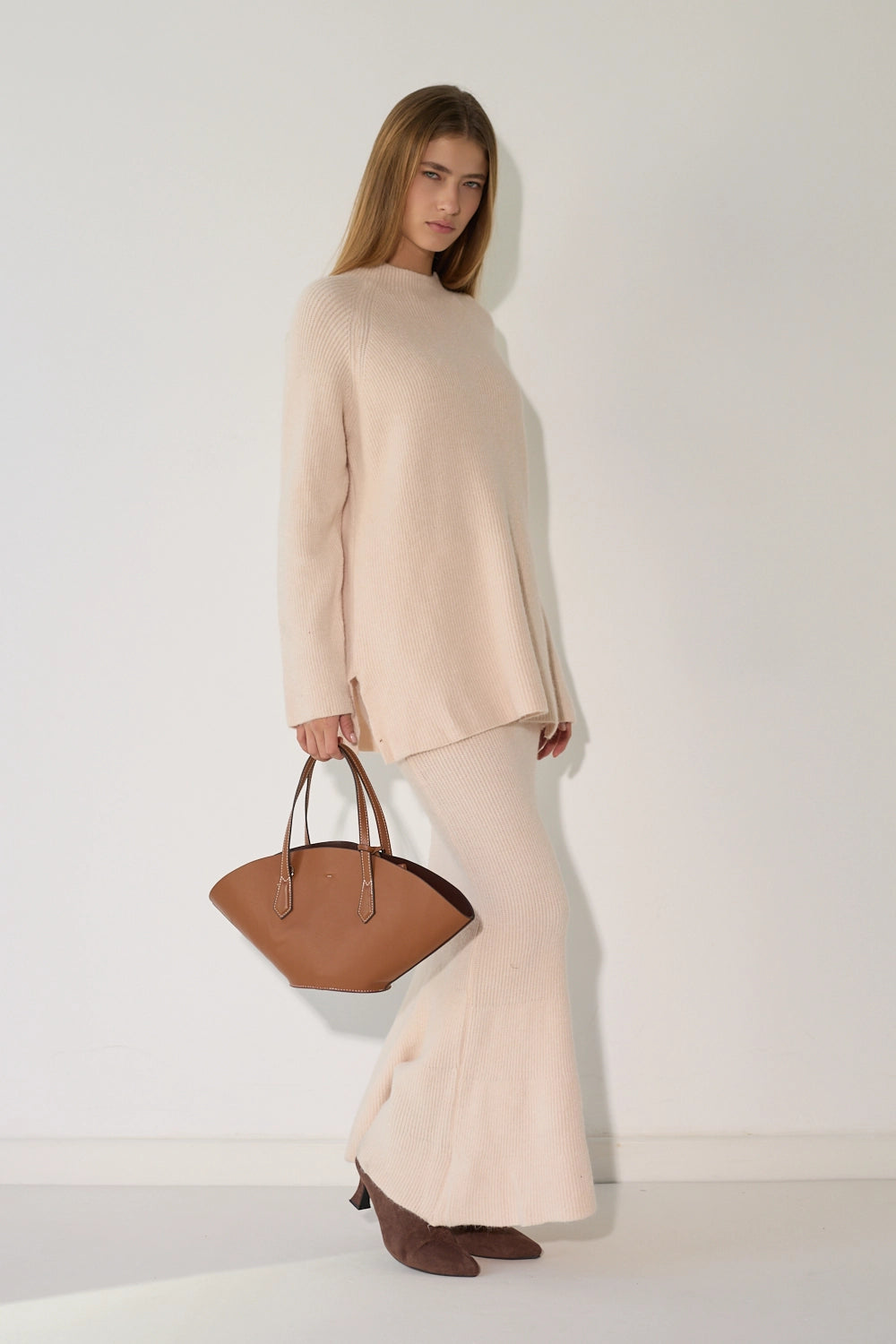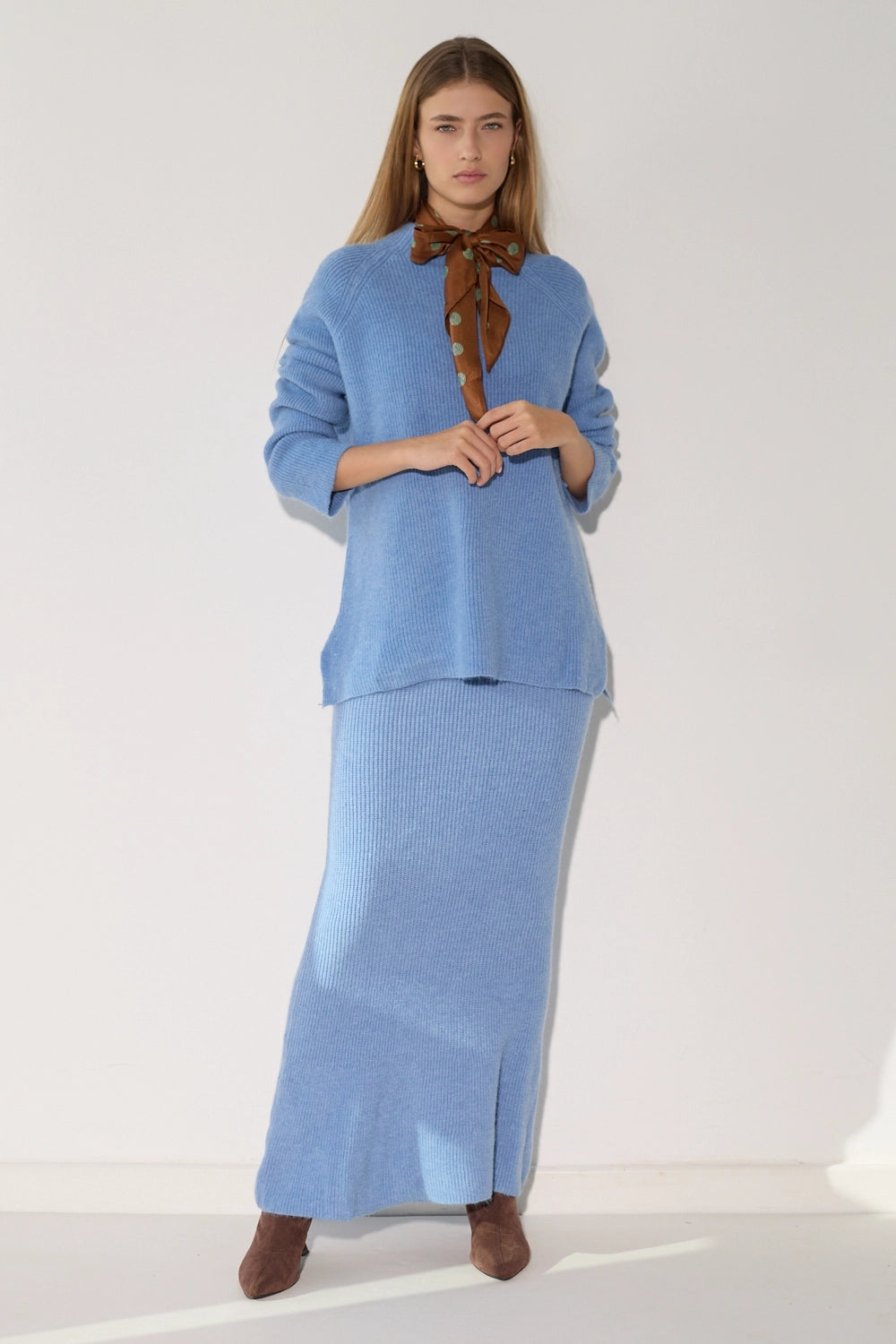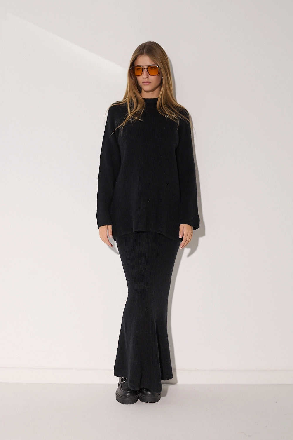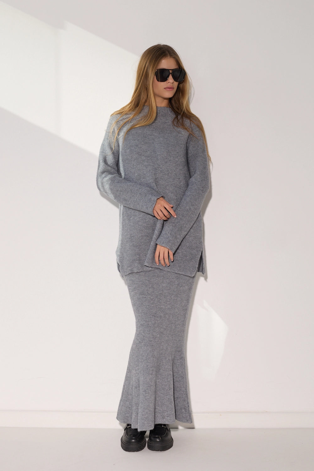 סט סריג מלא המשלב חצאית מקסי אלגנטית עם חולצת אוברסייז תואמת מבד סריג. העיצוב המינימליסטי והבד הסרוג האיכותי יוצרים לוק מלא סטייל שמושלם לימי החורף הקרים. זמין במגוון גוונים עדינים ומחמיאים.
