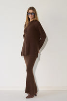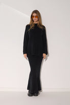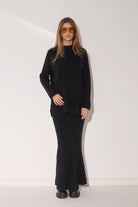 - חצאית סריג מקסי מחמיאה בגיזרה ישרה המתאימה לכל מבנה גוף