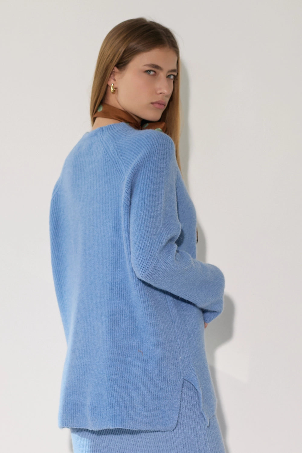 - גימורים מושלמים בצווארון העגול, שרוולים ארוכים וסיומת מחויטת