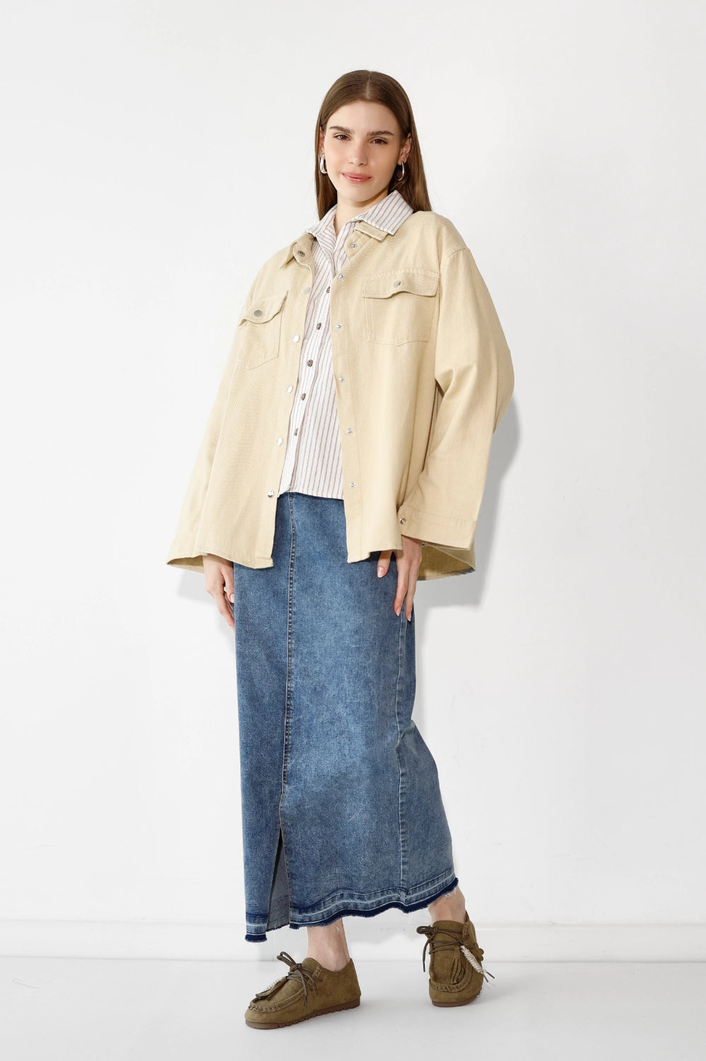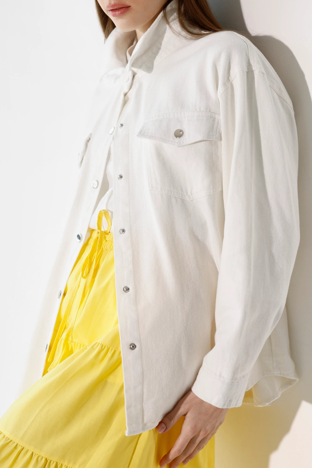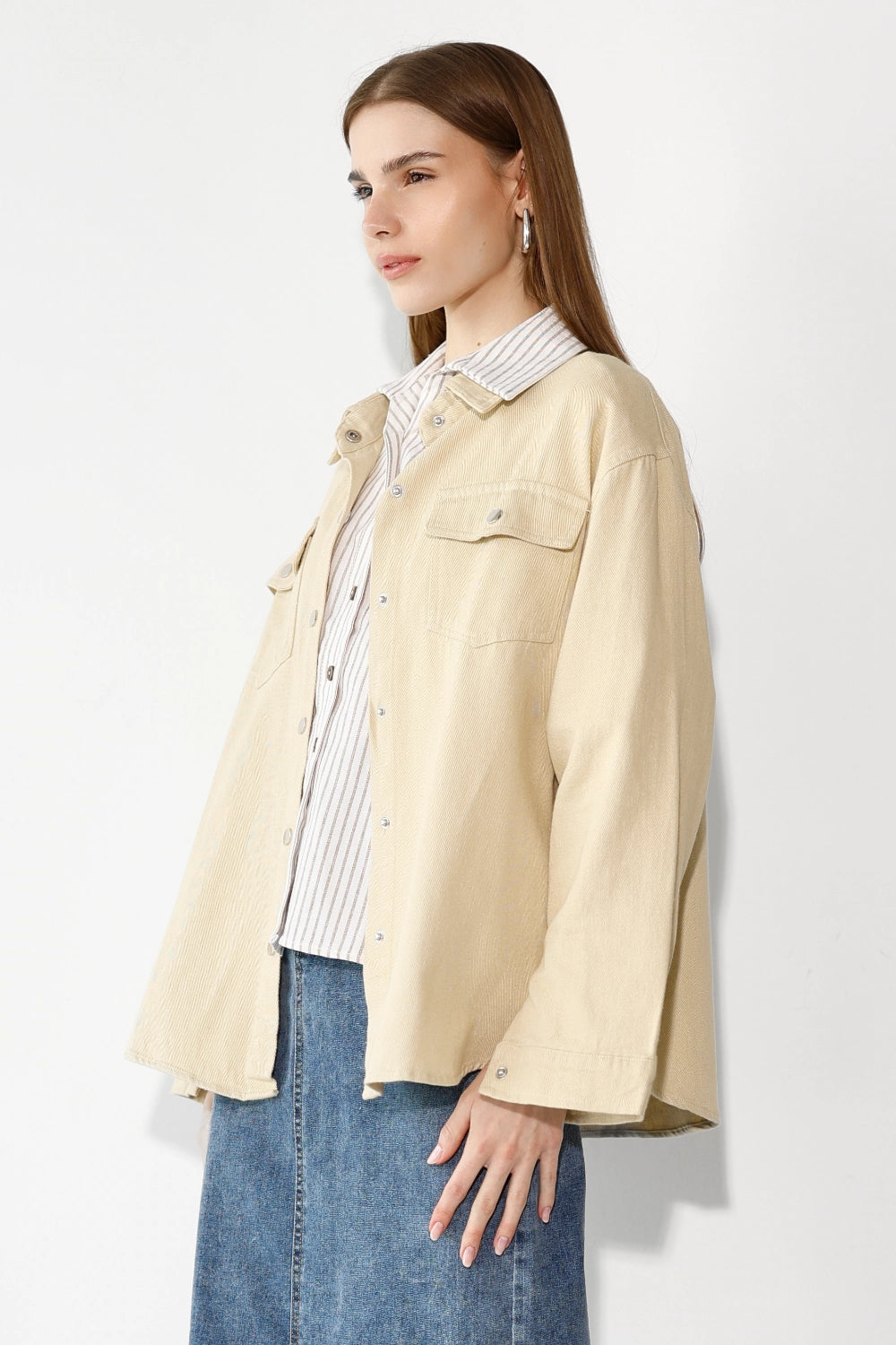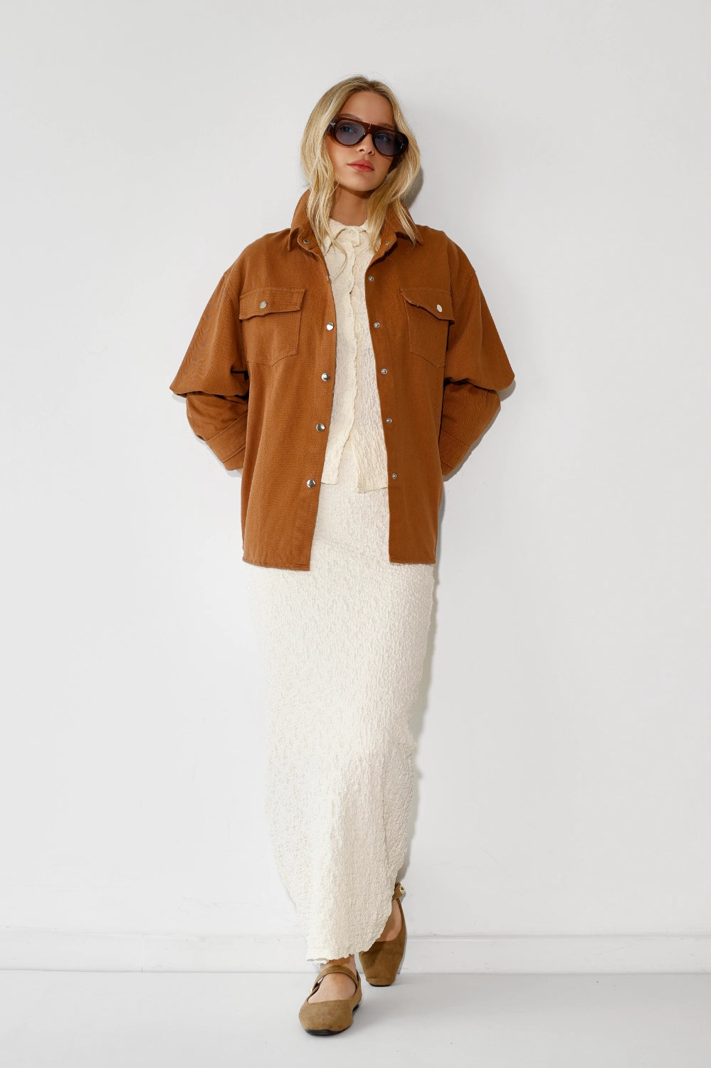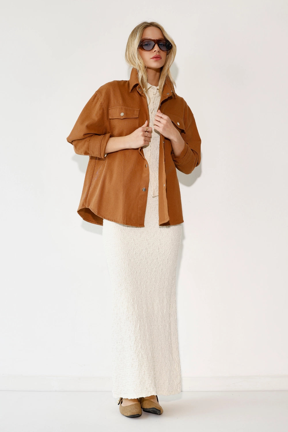 ג'קט דריל קל ומחויט, עם כיסים פונקציונליים שמוסיפים נגיעה של סטייל ופרקטיות. בד דריל איכותי שנופל יפה ושומר על צורתו – פריט שמשדרג כל לוק בשניות. שכבה מושלמת לאביב ולסתיו – לובשים אותו מעל שמלה, חצאית מידי, או חצאית ג'ינס. מהיום ועד הערב, בלי לחשוב פעמיים.