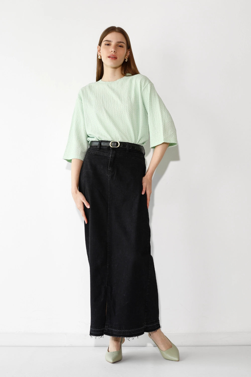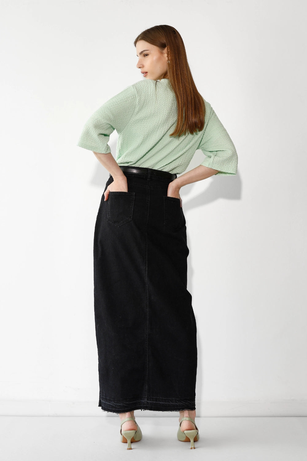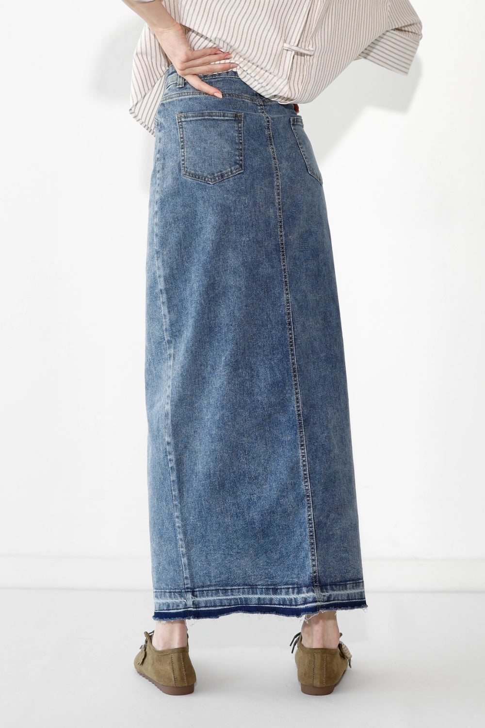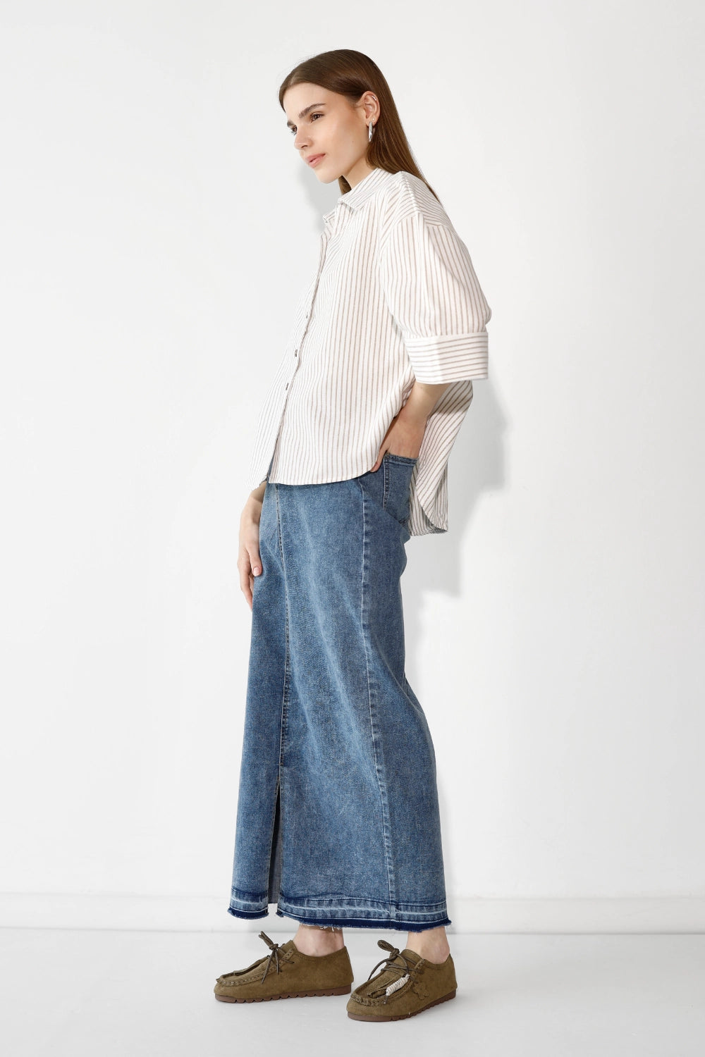 חצאית ג'ינס מקסי בגזרה זורמת ומחמיאה, שמשלבת את הקלאסיקה הנצחית של הדנים עם אורך מקסי אלגנטי. מושלמת לשילוב עם חולצה בייסיק, גוף צמוד או חולצה מכופתרת. מהיום ועד הערב, בכל עונה.