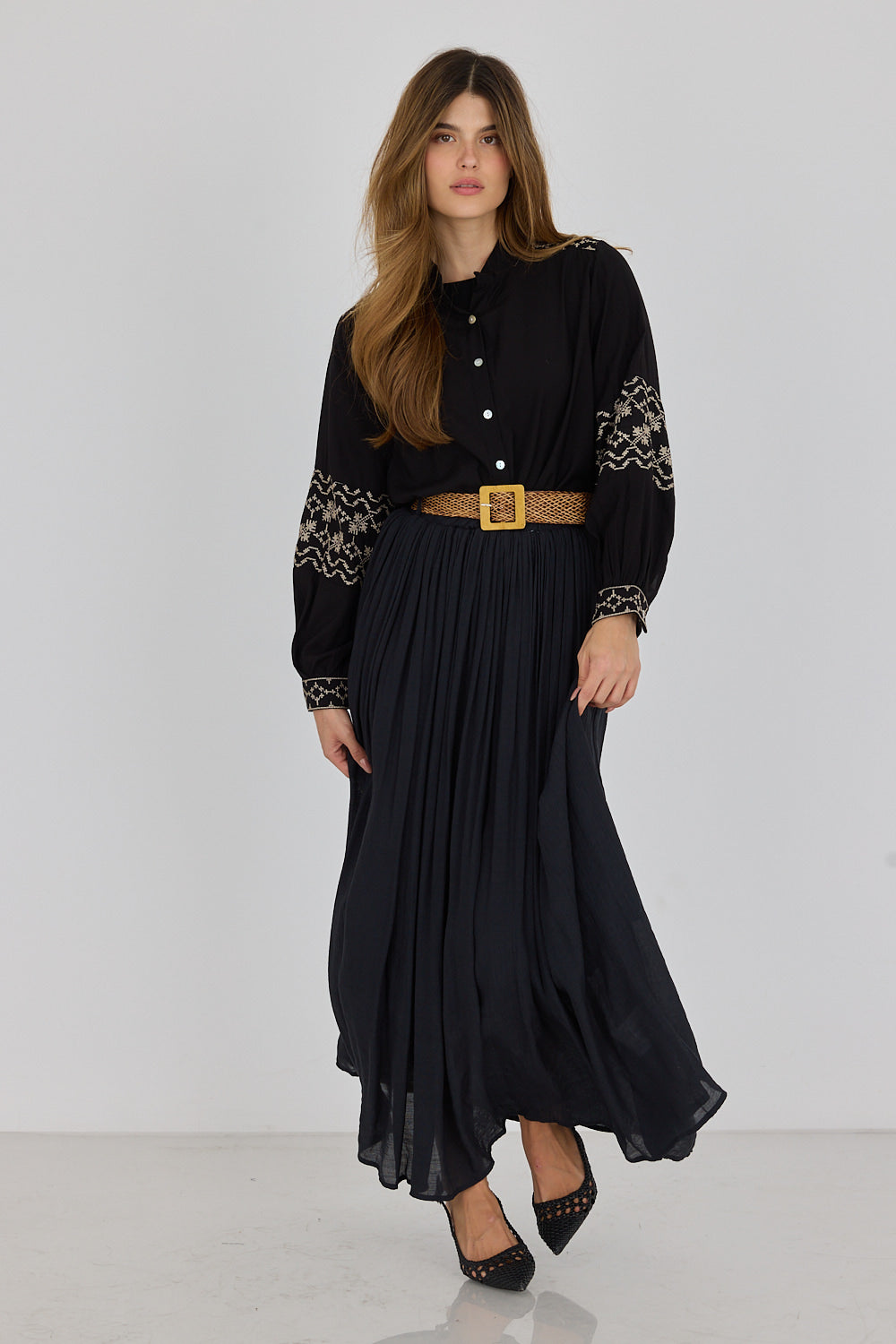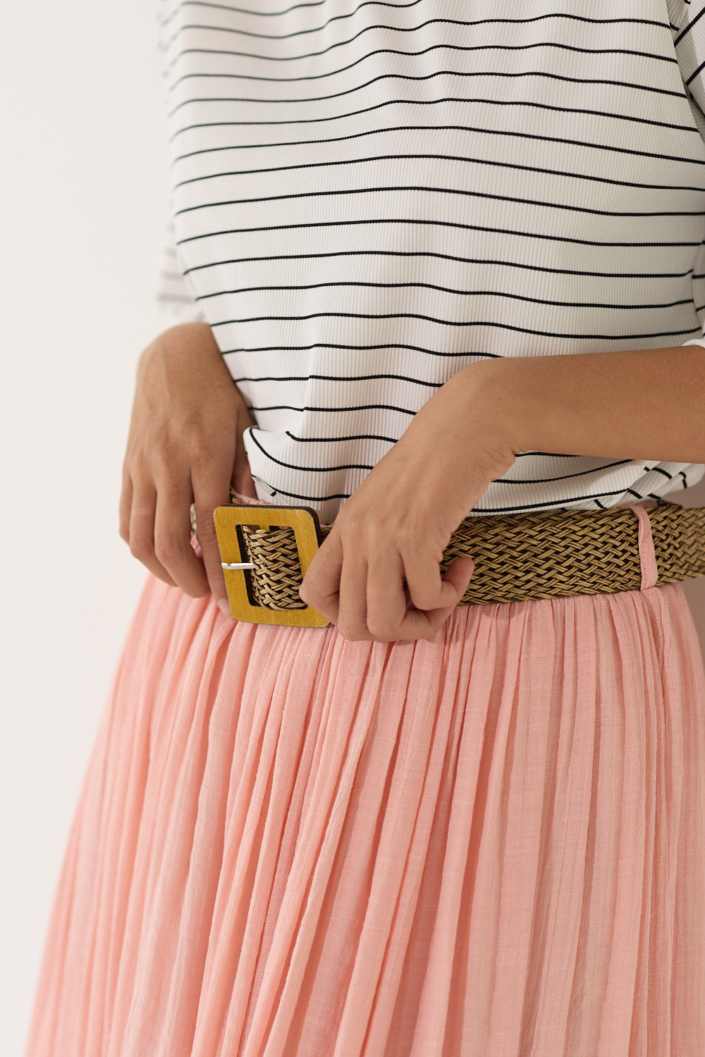 מגיעה עם חגורת קש קלועה להשלמת הלוק