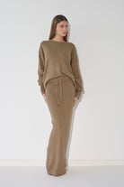 • חצאית סריג גבוהה עם שרוך מתכוונן